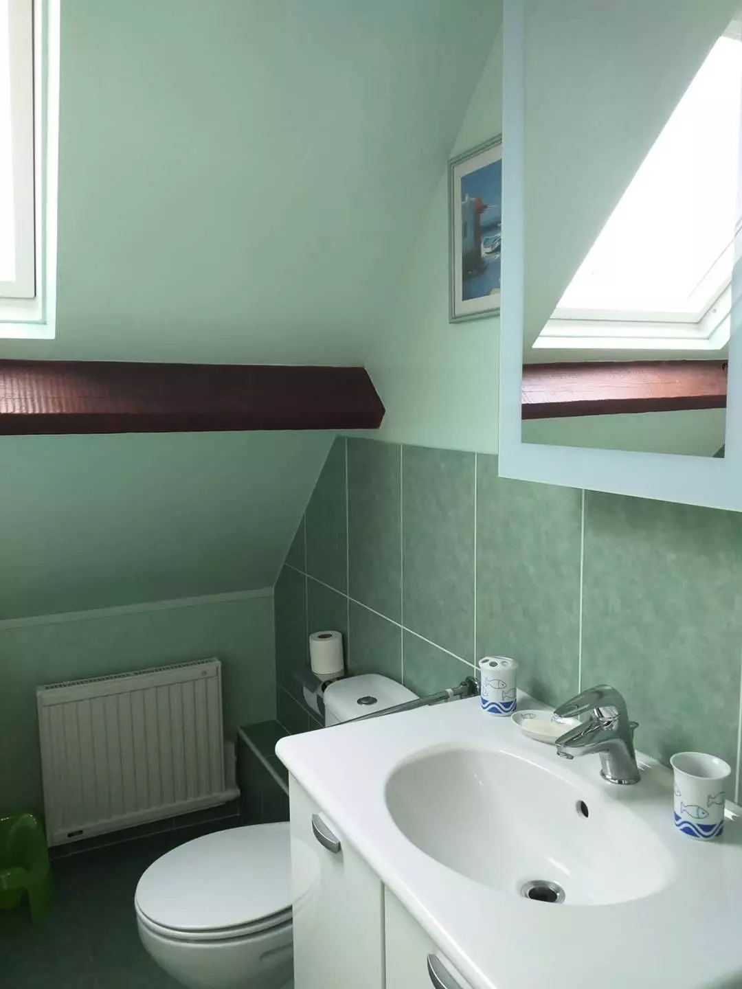 - Une salle d'eau avec douche, vasque, rangements ; sèche-serviette ;