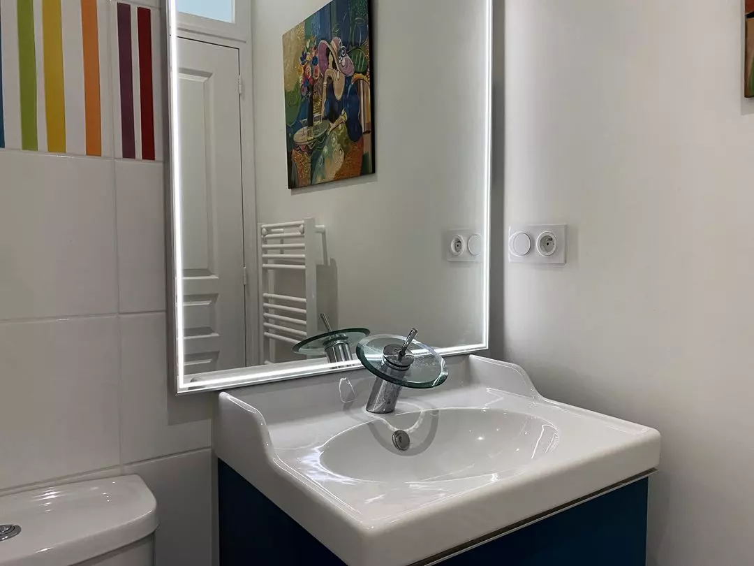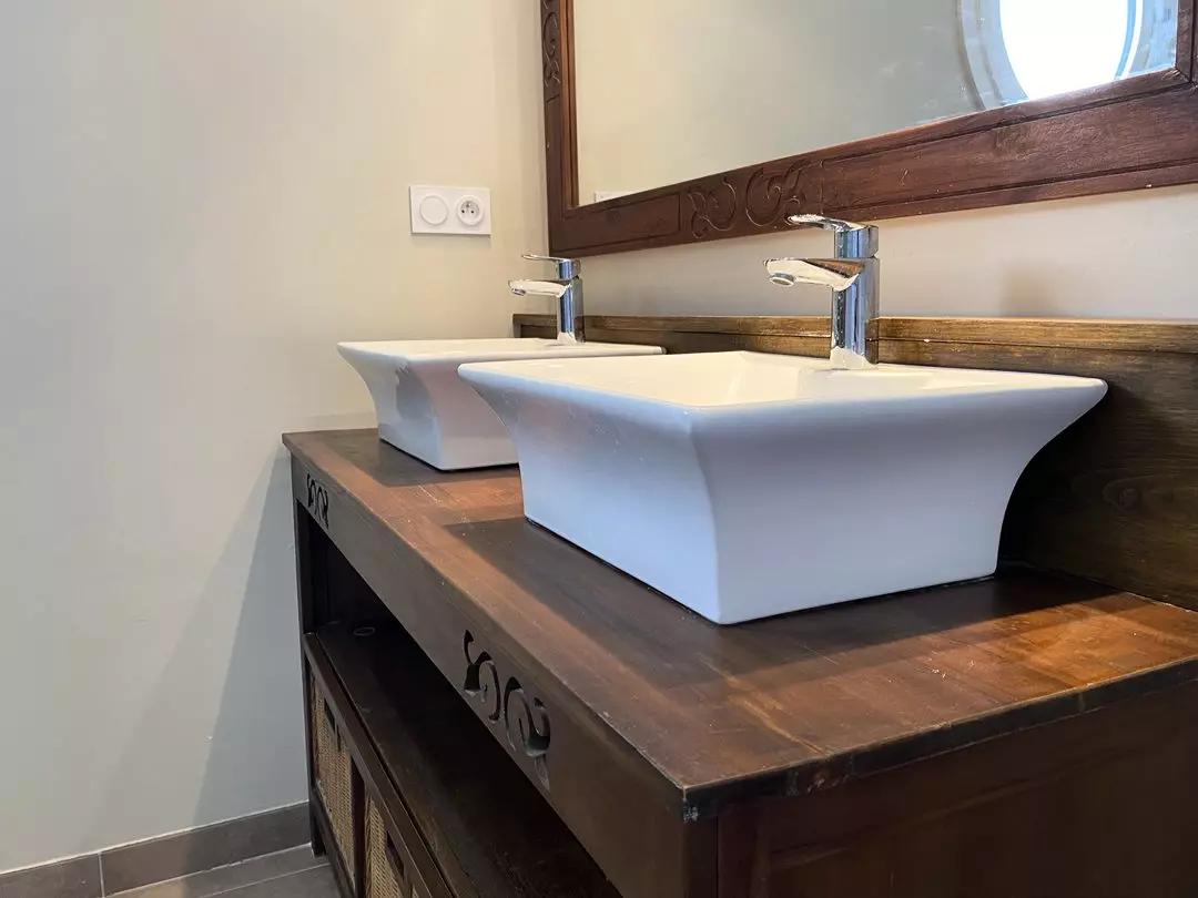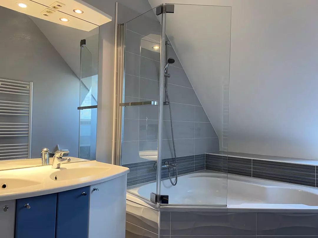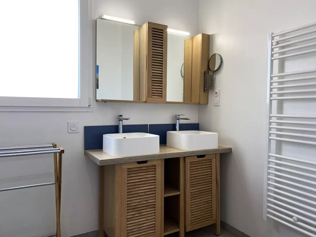 - Une salle d'eau attenante à la chambre parentale avec douche, double vasque et W.C ;
