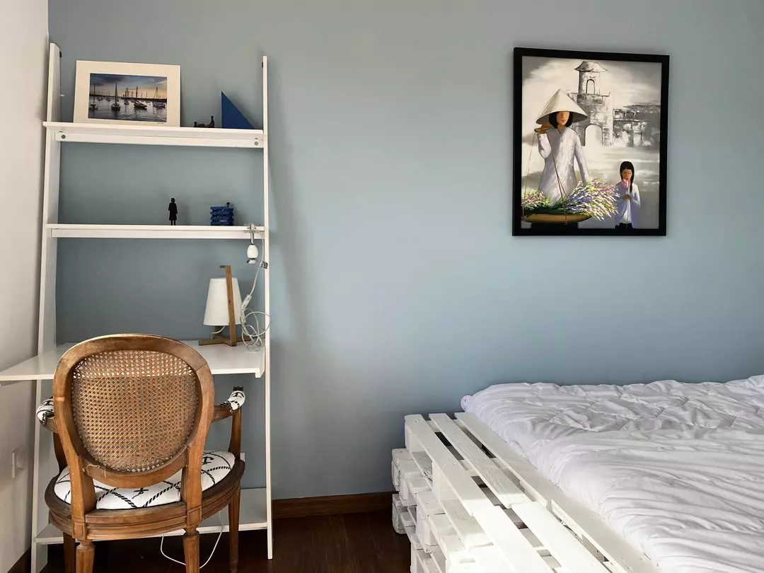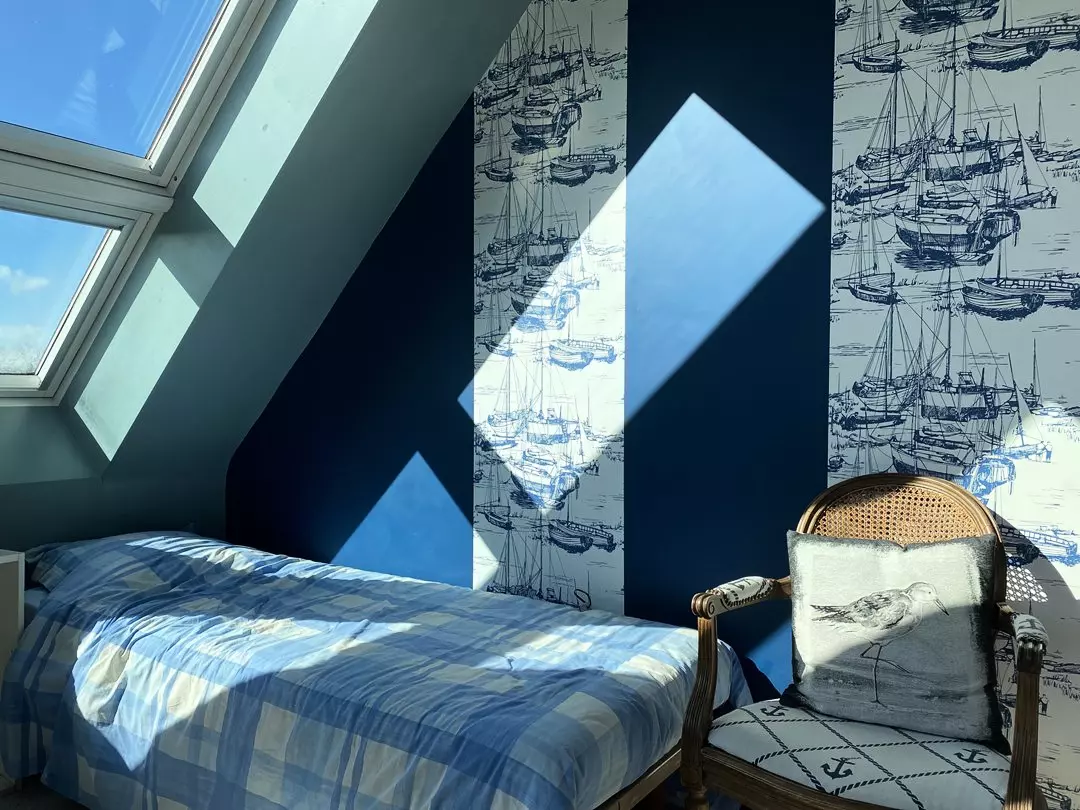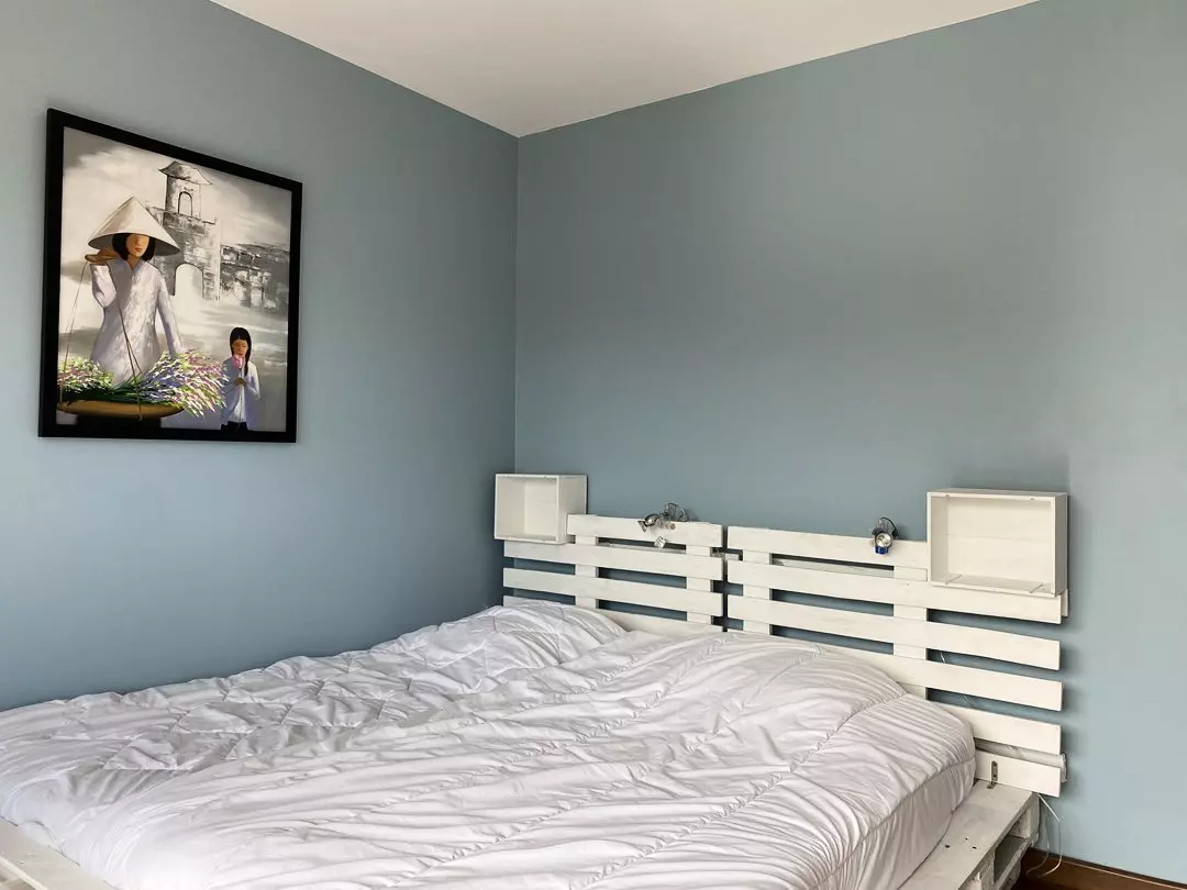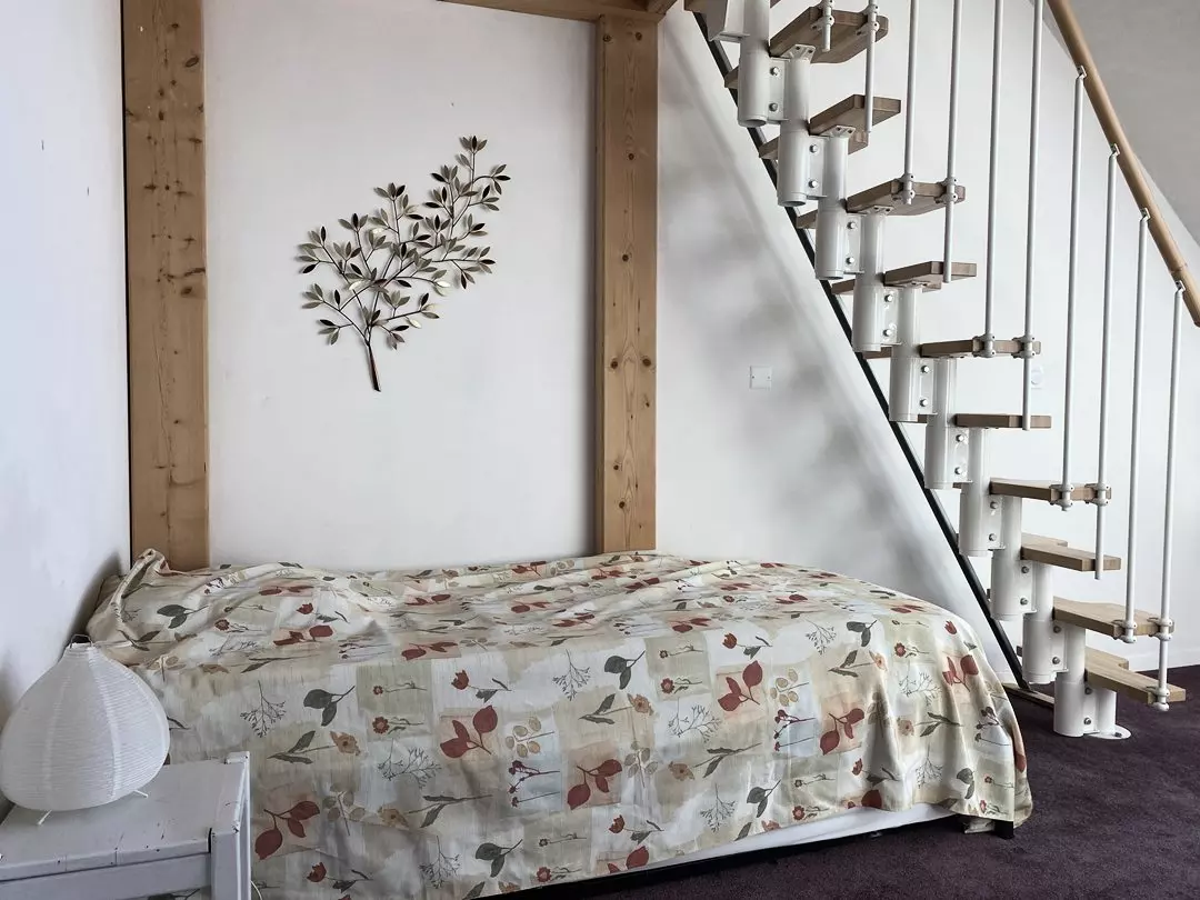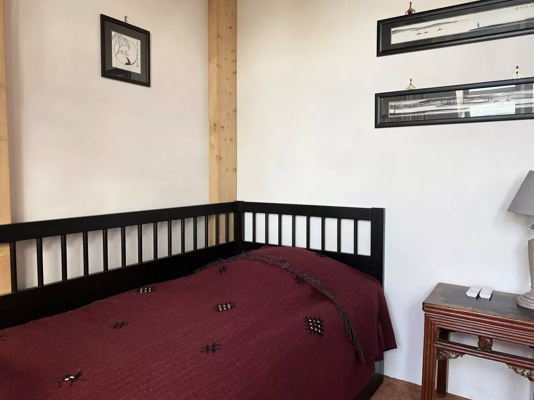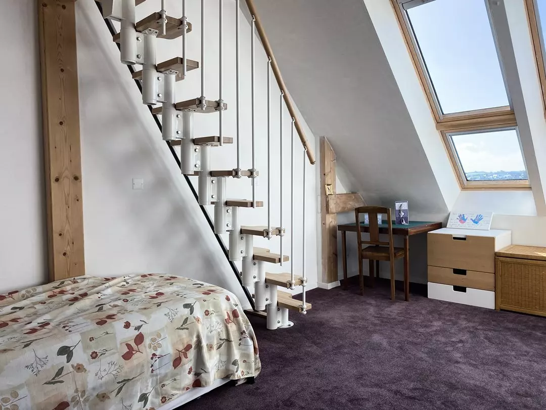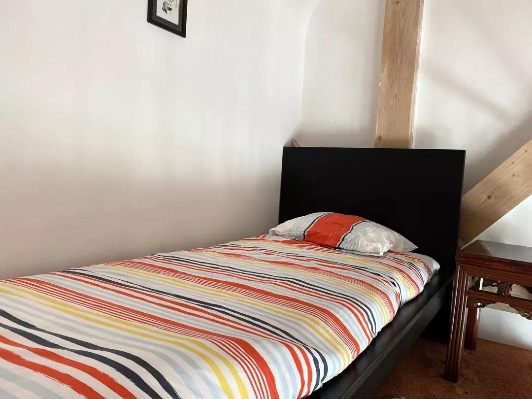 - Une chambre équipée d'un lit individuel (90x190cm) et d'un lit en mezzanine (90x200cm) ;
