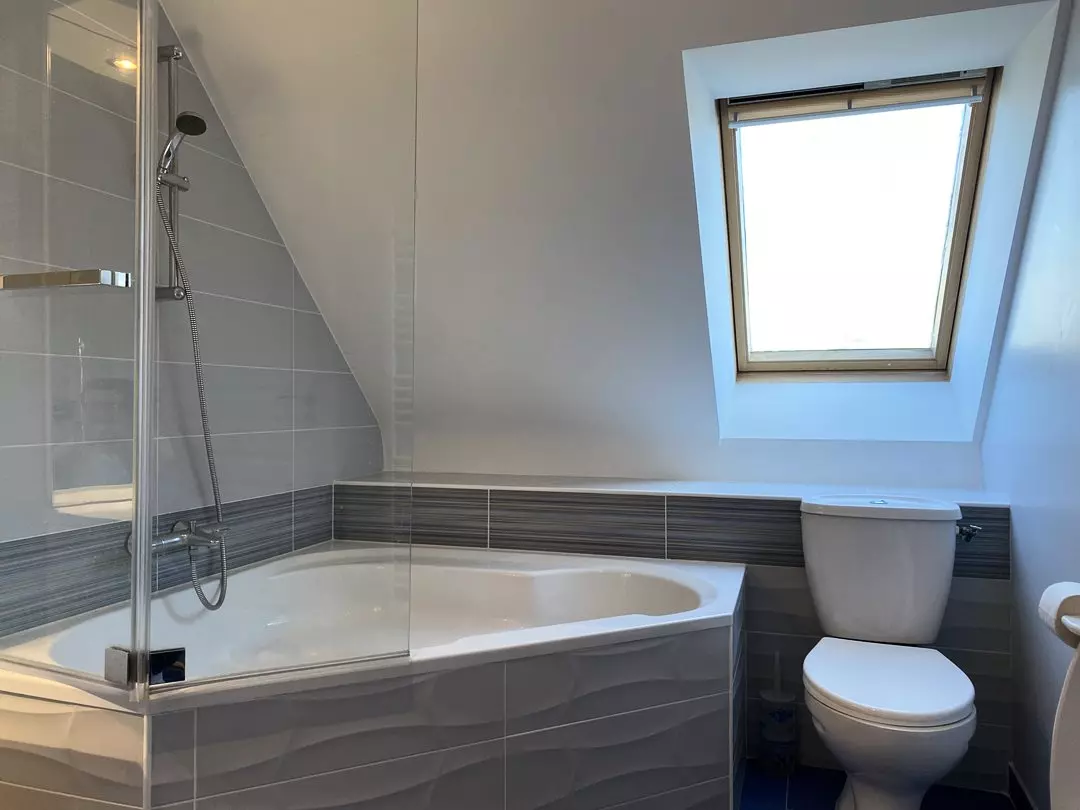 - Une salle de bain avec baignoire et W.C ;