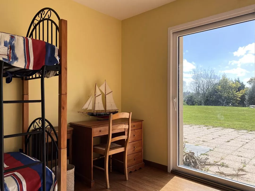 - Une chambre avec un lit gigogne pouvant accueillir deux personnes ( 2 couchages : 90x200cm) avec accès jardin ;