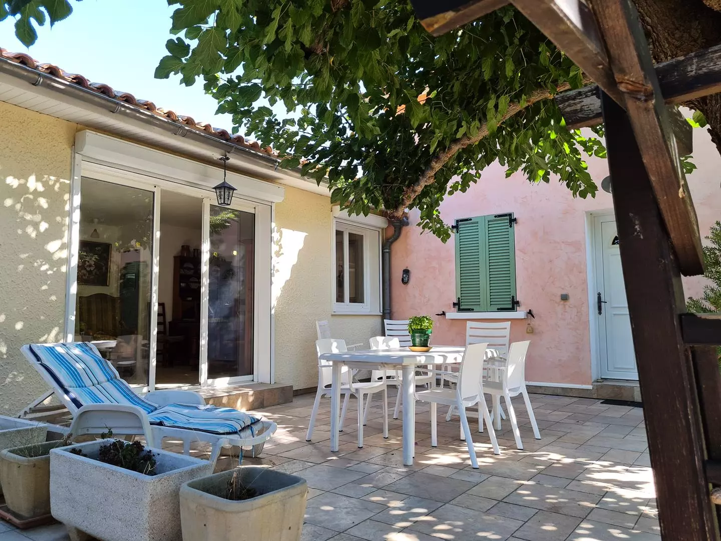 (A savoir que sur le terrain il y a deux maisons, et il est possible que pendant votre location la maison d'à côté soit occupée par le propriétaire. N'hésitez pas à nous consulter pour savoir si c'est le cas pendant la période qui vous intéresse).
