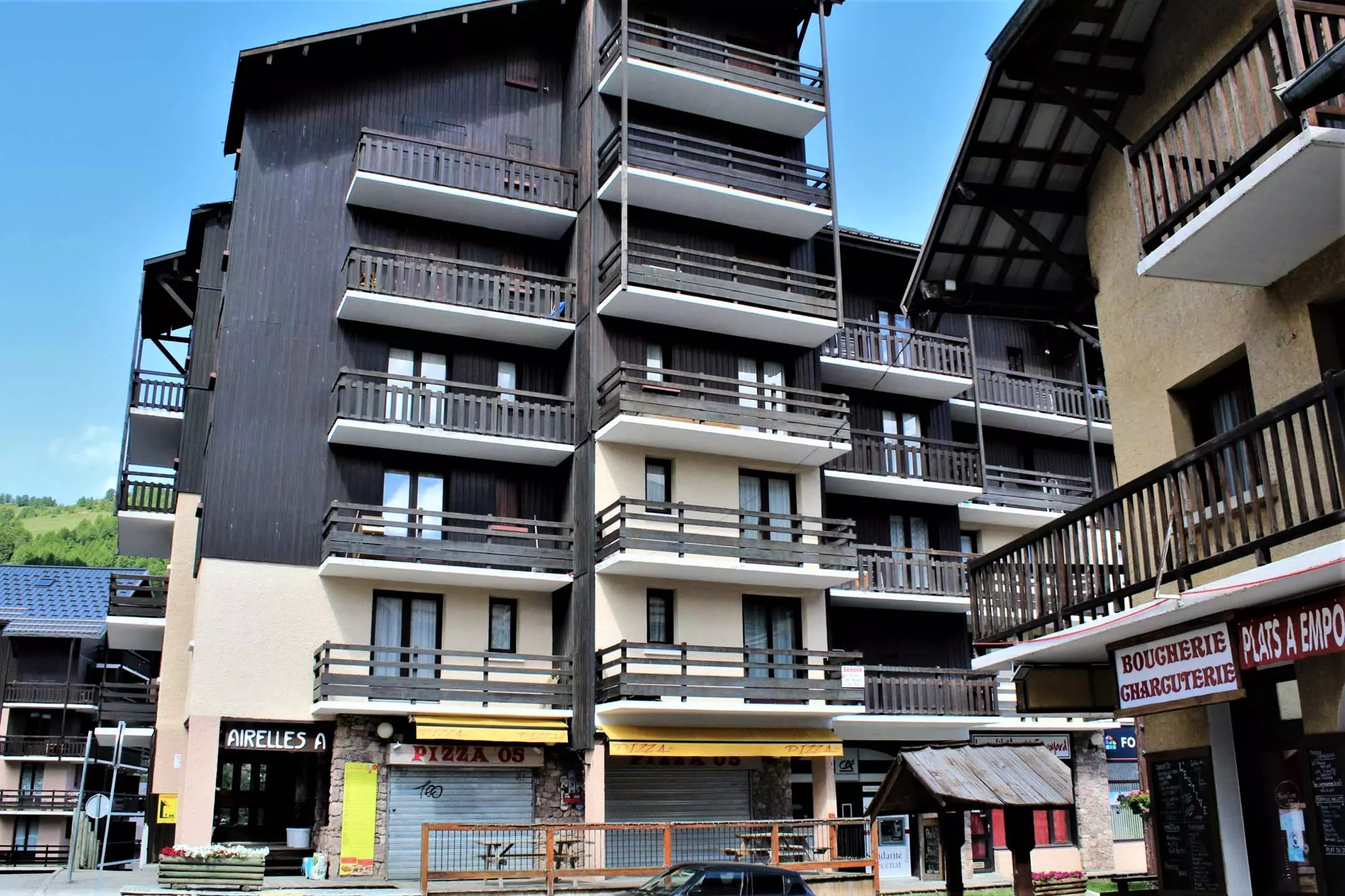 Distribués au coeur d'une forêt de mélèzes, les bâtiments de bois favorisent l'accès direct à la montagne tout en fournissant de nombreux équipements de proximité : commerces, services de santé, activités de loisirs (cinéma, patinoire, piscine, luge sur rail...) et services de proximité (halte garderie, poste...).