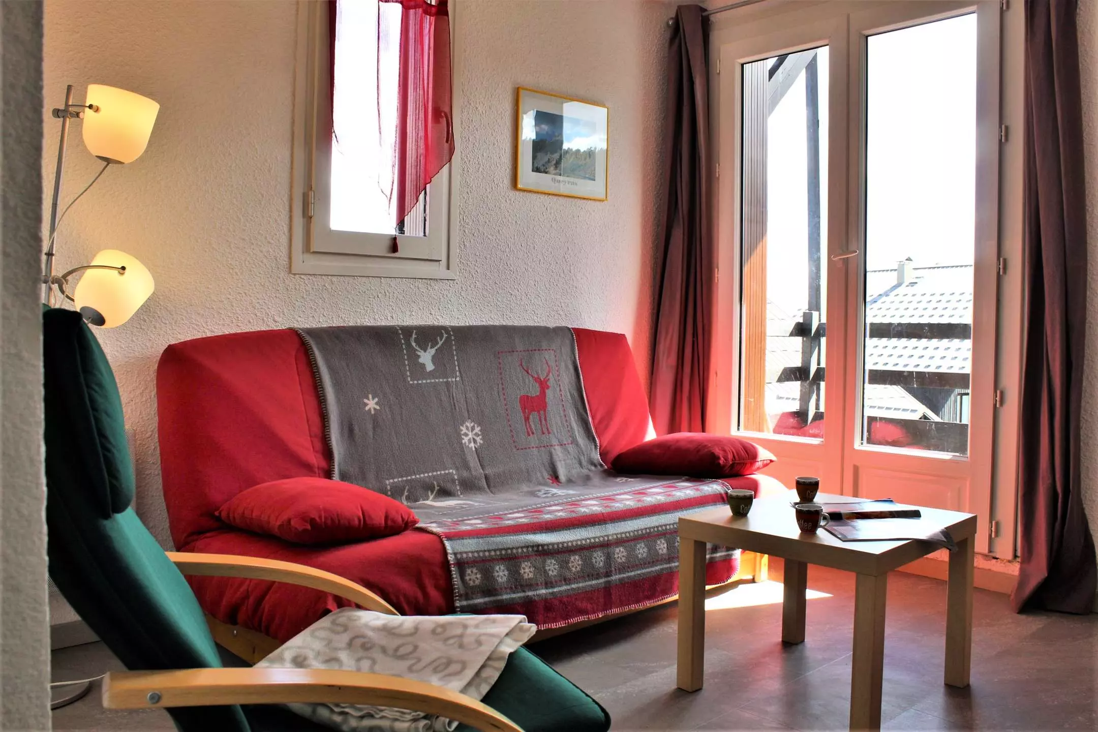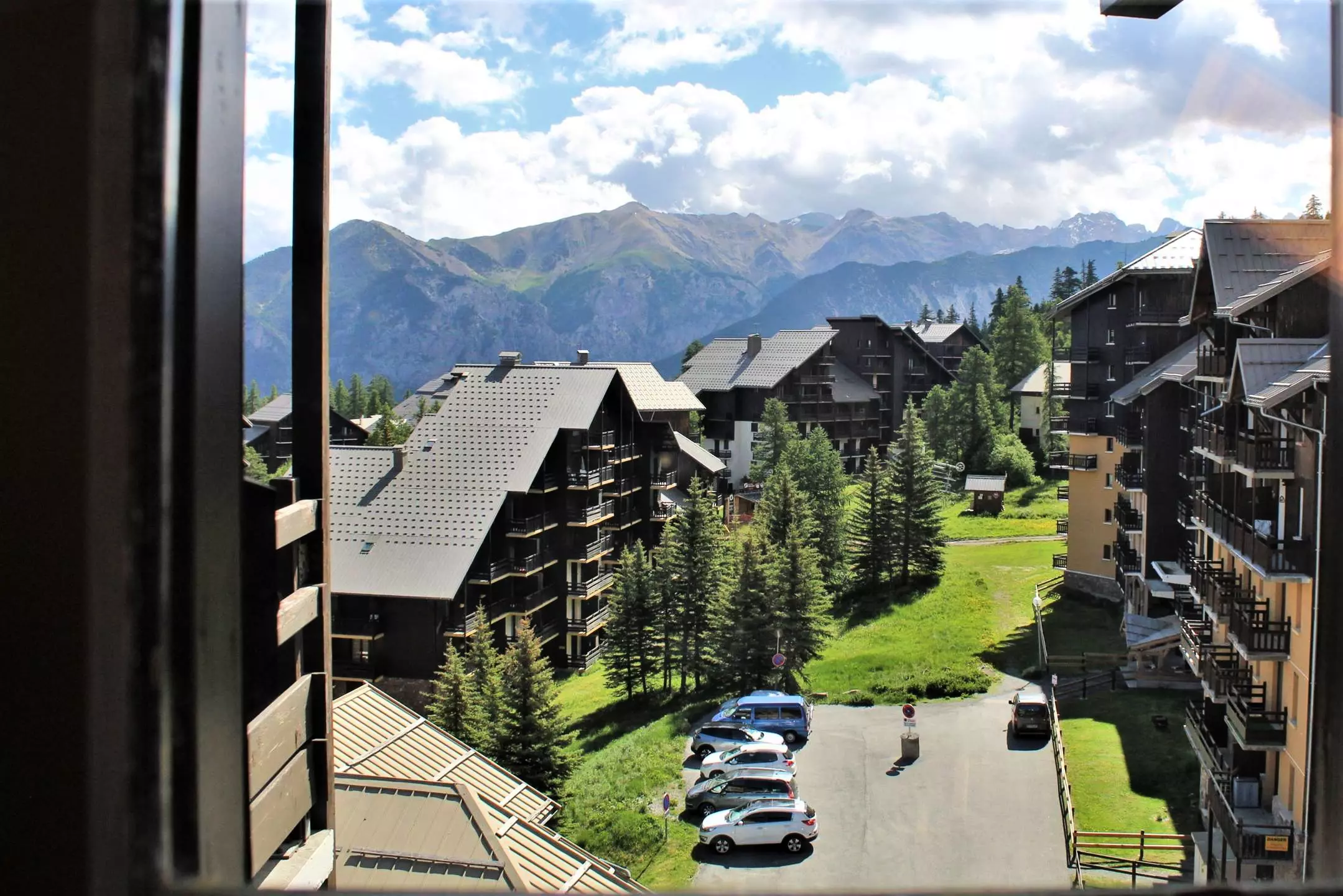 Le balcon est en exposition nord-est, avec une jolie vue sur les montagnes.