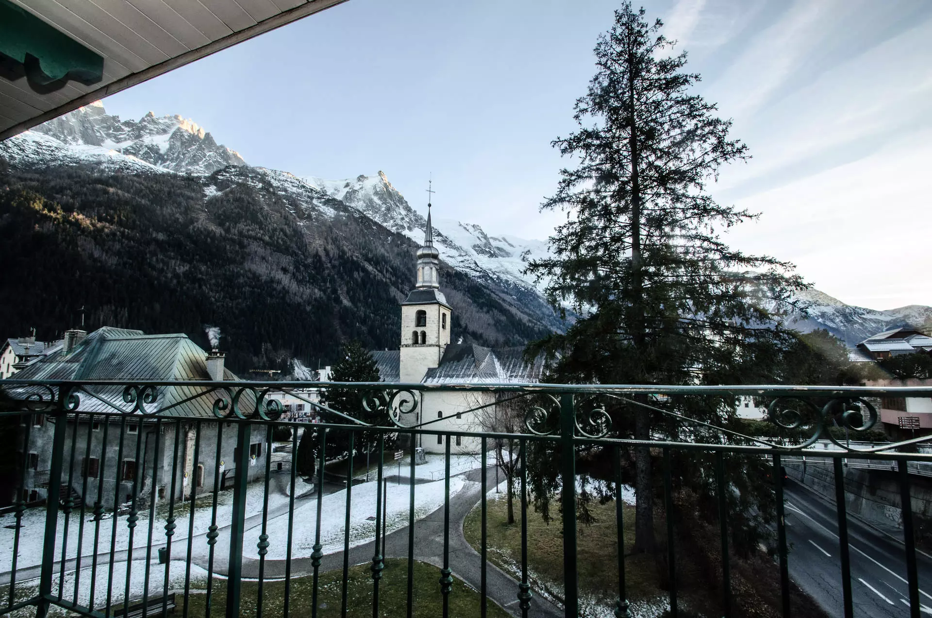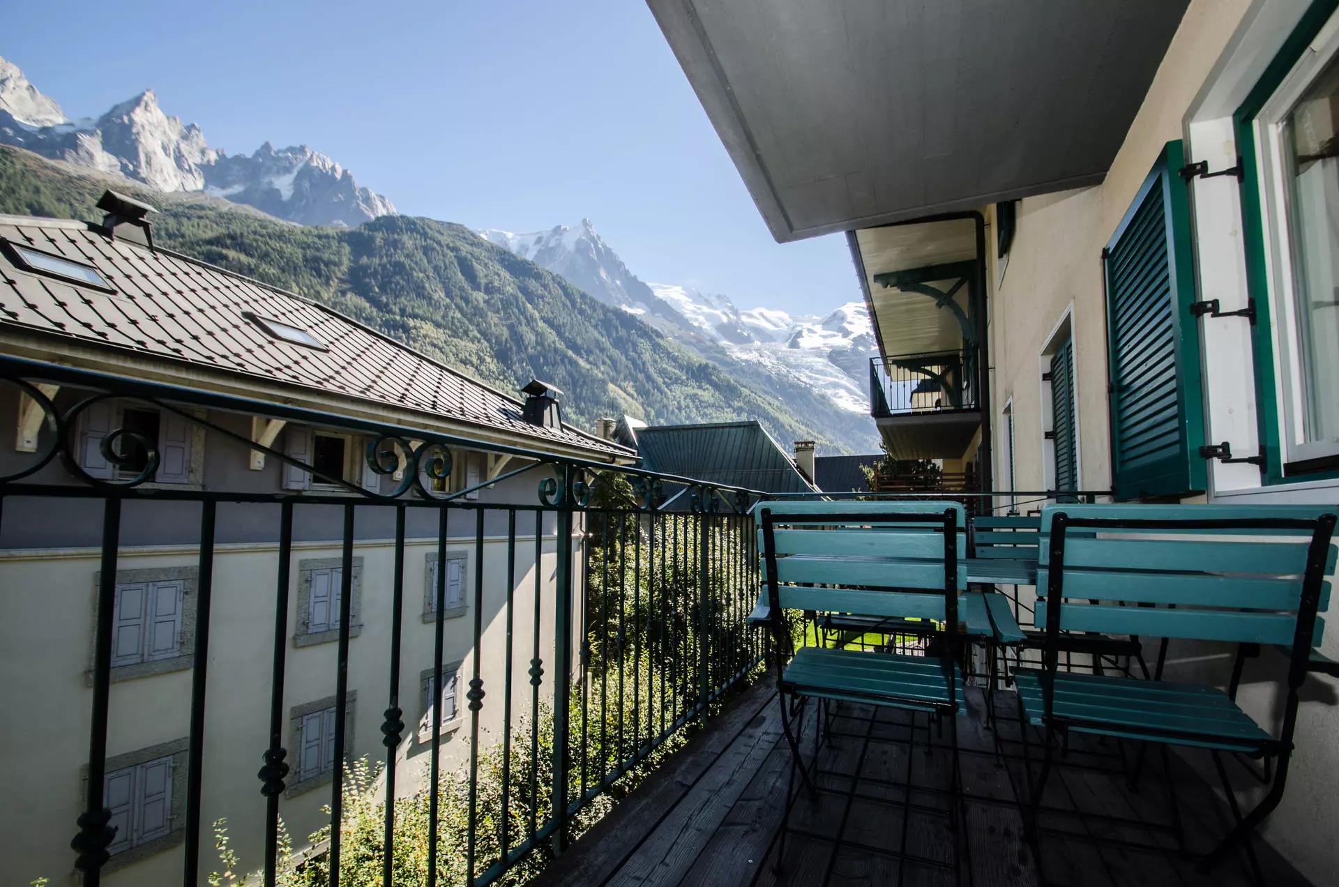 - Terrasse équipée d'un salon de jardin avec vue sur le Mont-Blanc et les Aiguilles de Chamonix
