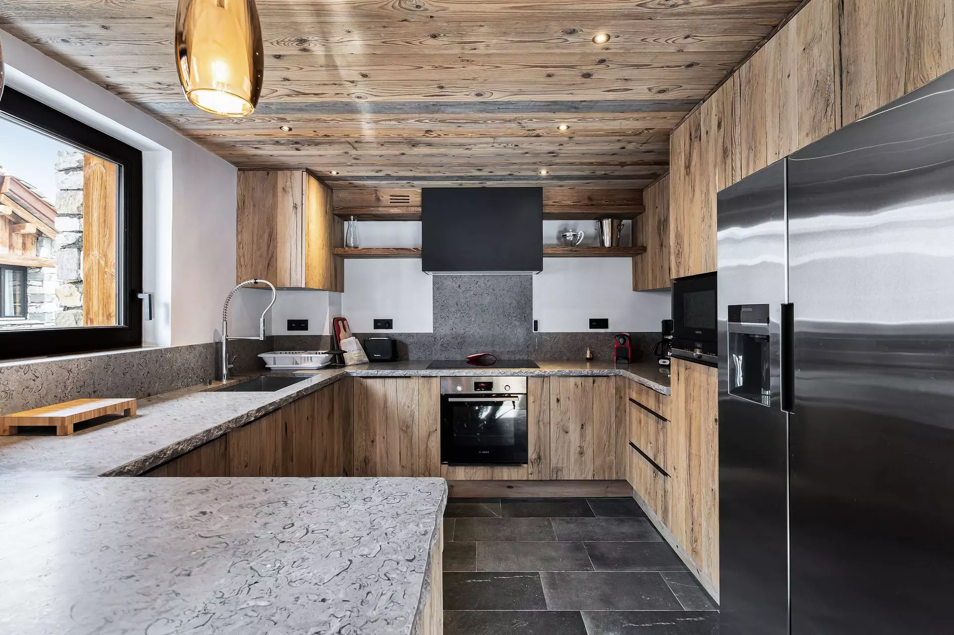 Situé dans le vieux village de Val d'Isère, à 150m des pistes, le chalet Angelus 2 de 350m² accueille 8 adultes et 4 enfants sur 4 niveaux avec ascenseur. vous serez éblouïs par le séjour cathédrale.
