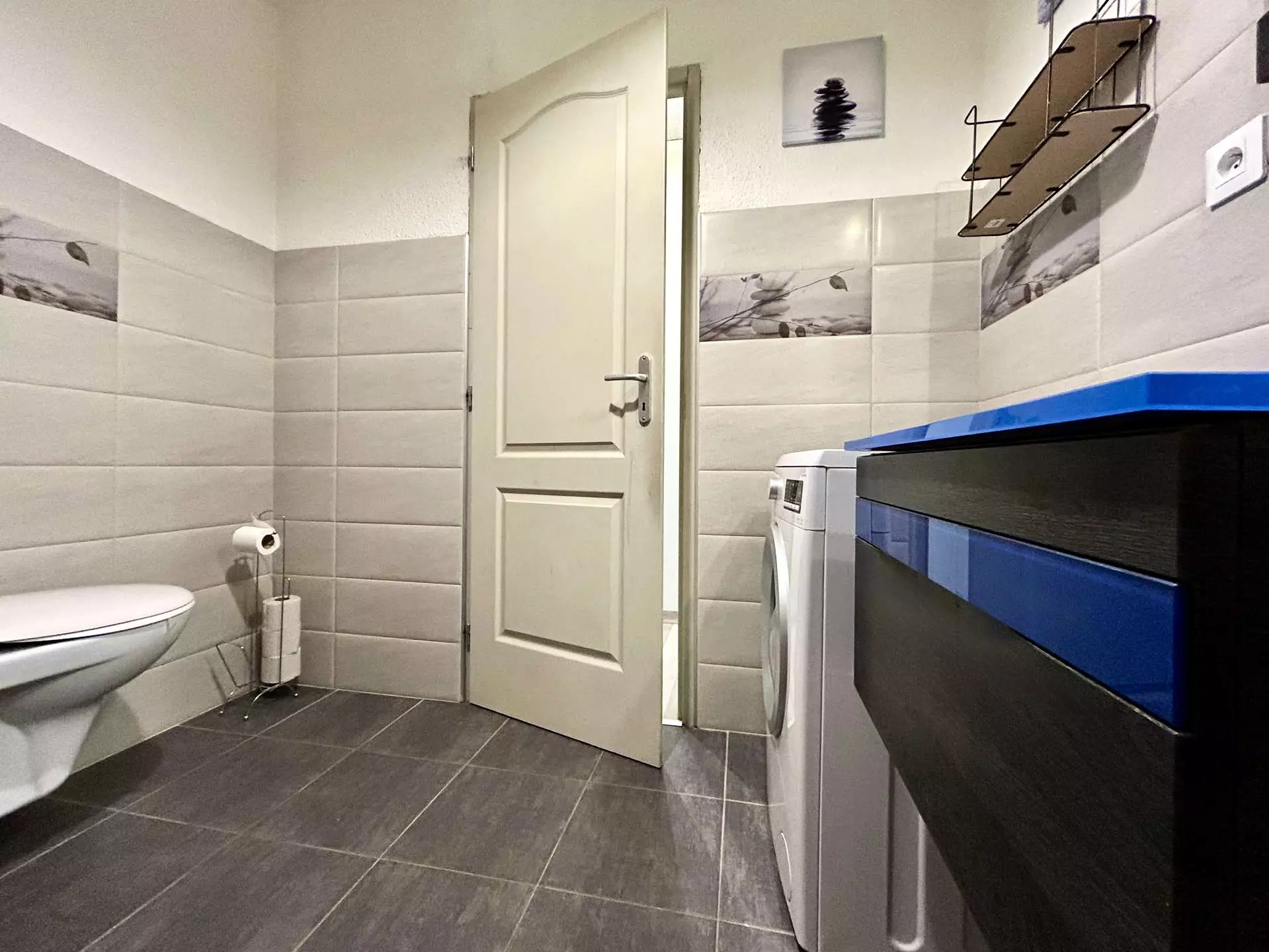 - Une salle de bain avec baignoire,