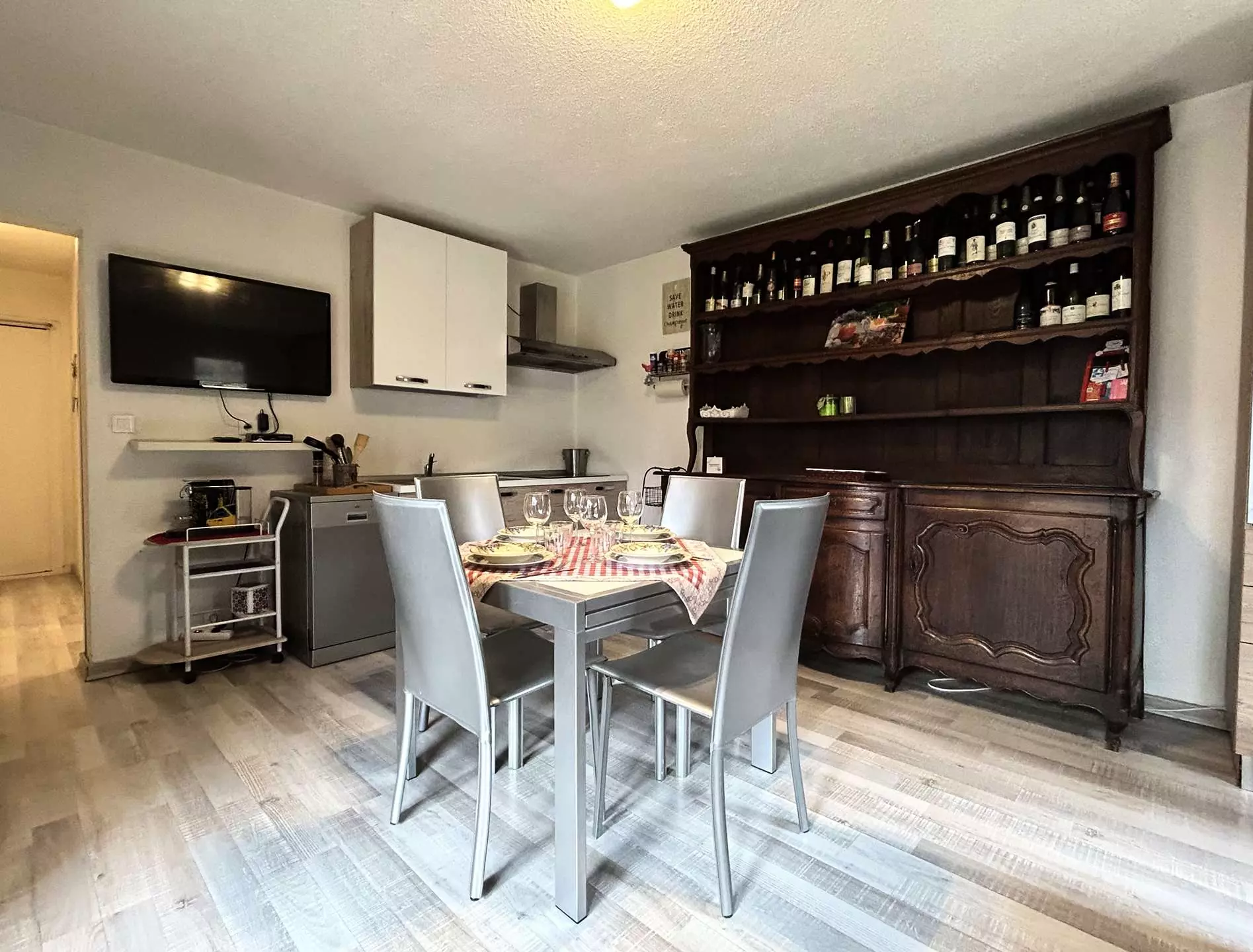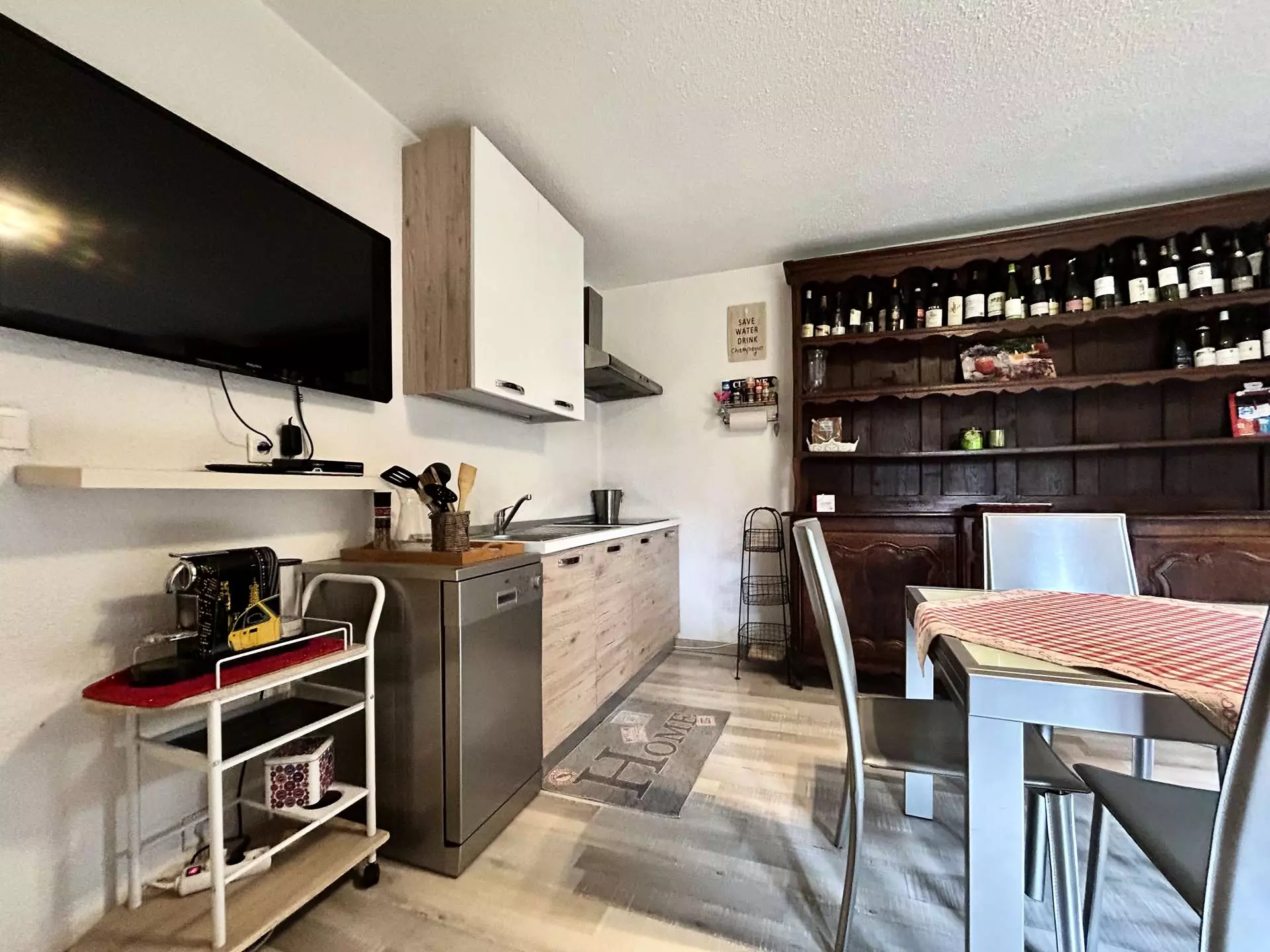 - Une cuisine équipée,