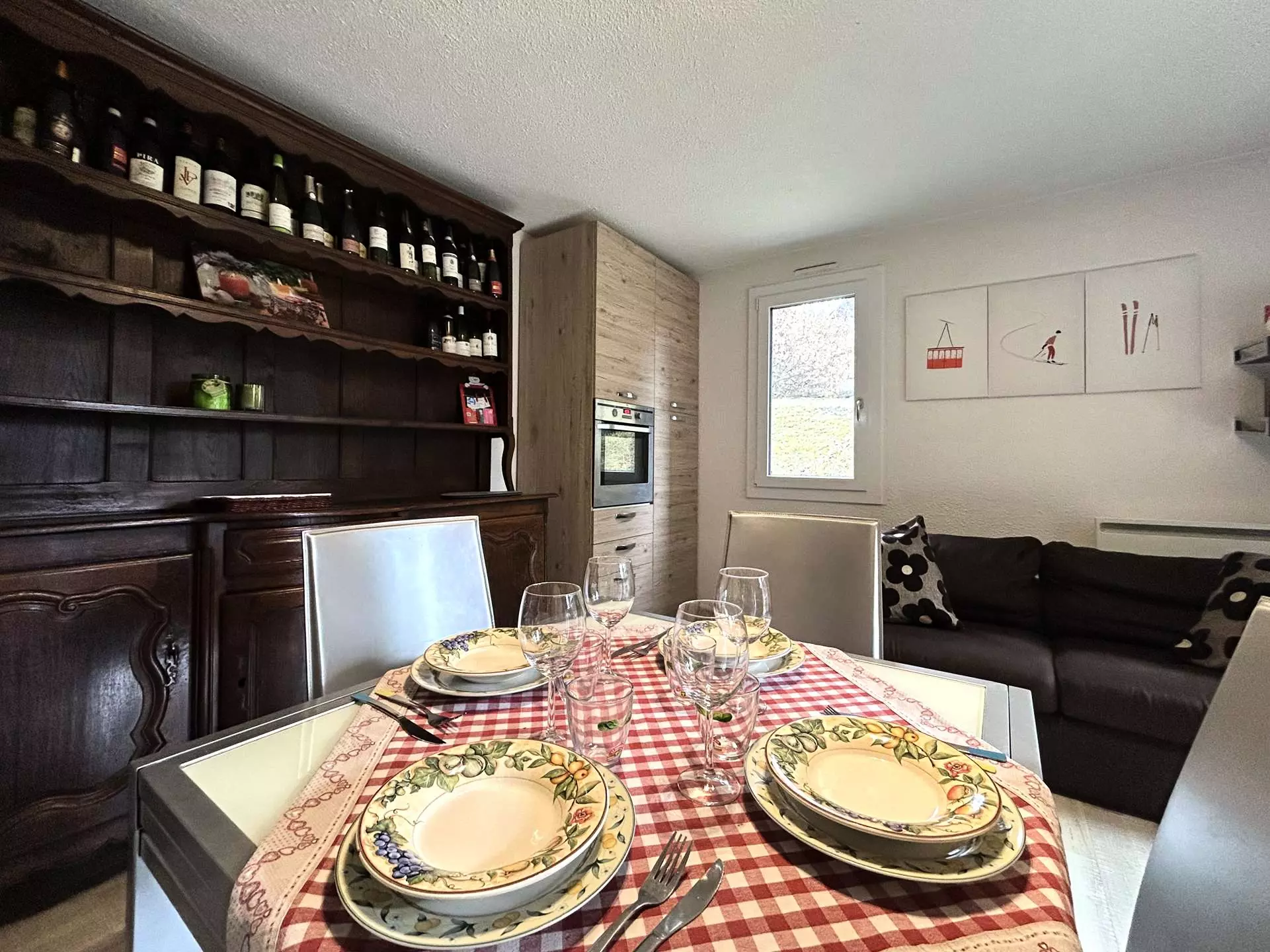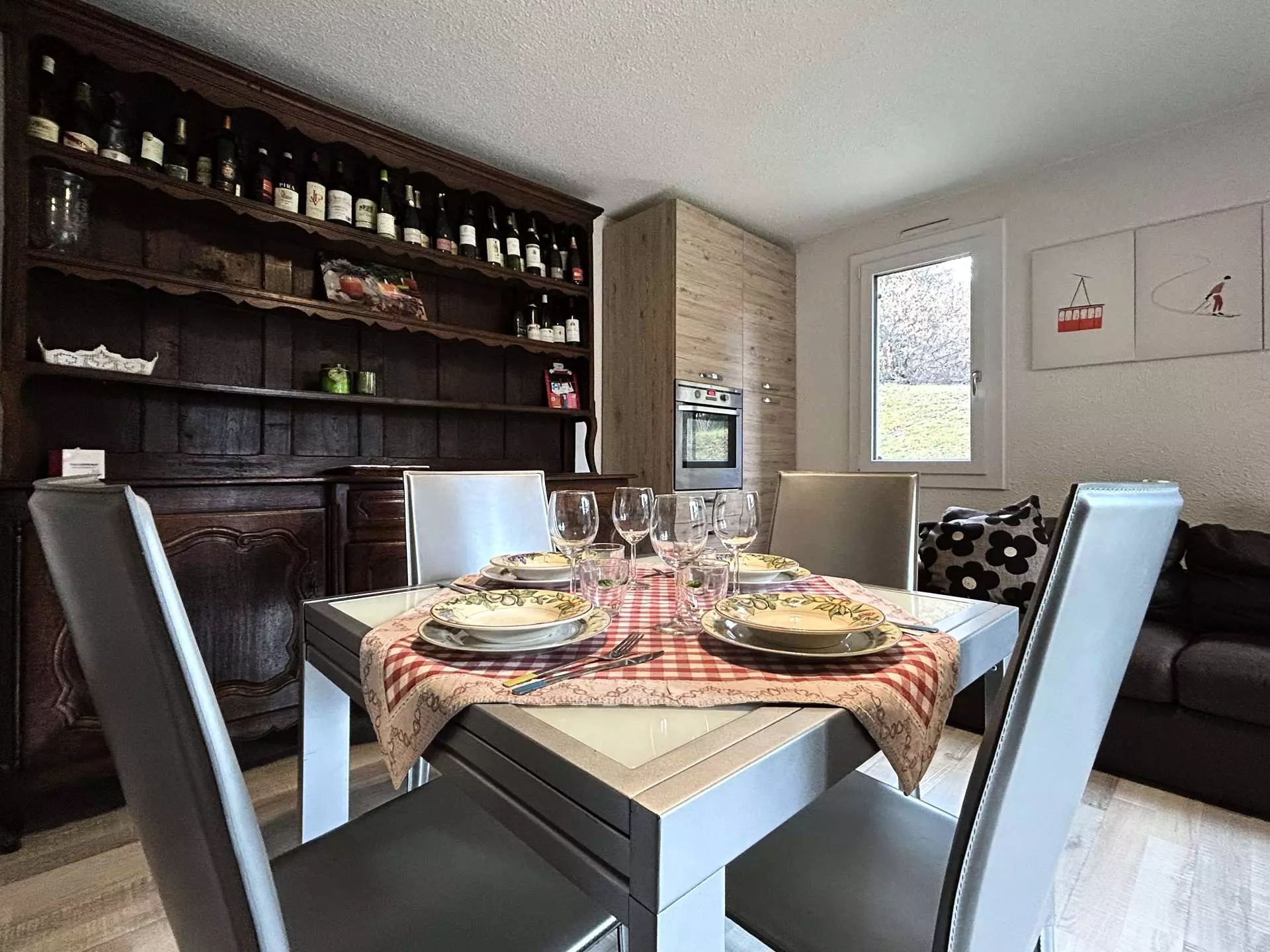 Appartement bien équipé avec une vue imprenable sur les montagnes et piste de ski. A proximité des commerces tout en étant au calme.
