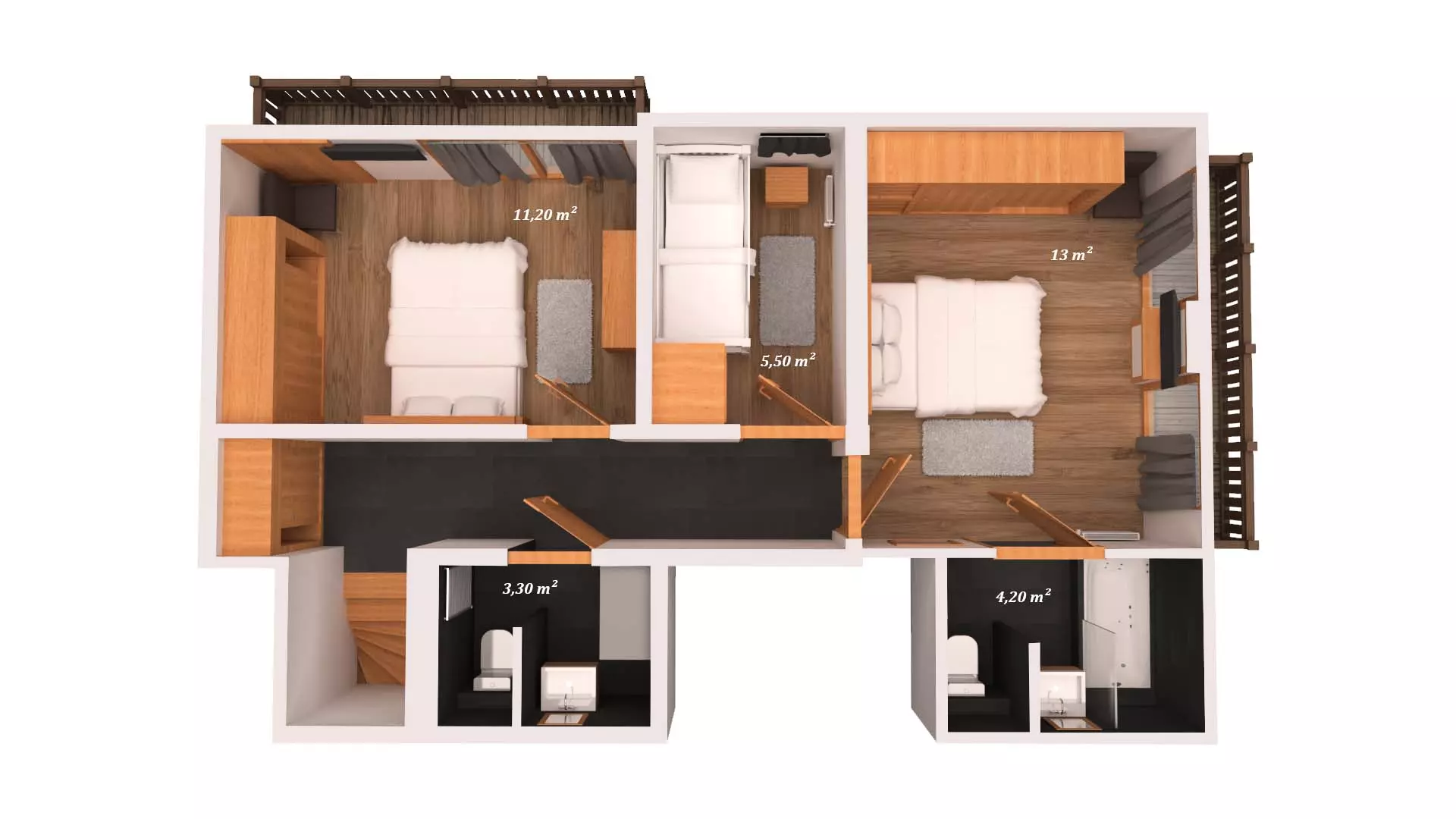 D'une superficie de 112m², il peut accueillir 8 personnes dans ses 4 chambres.