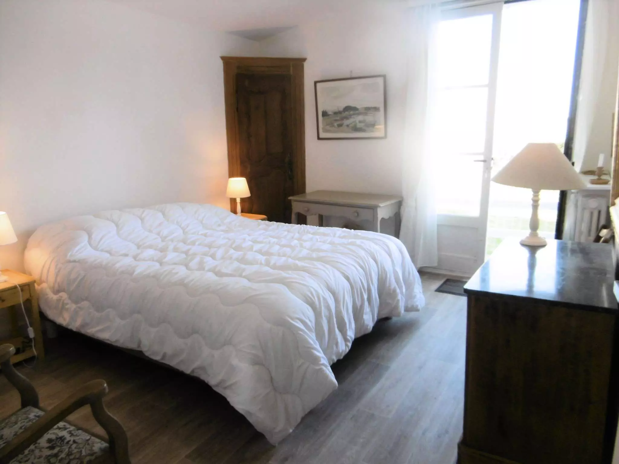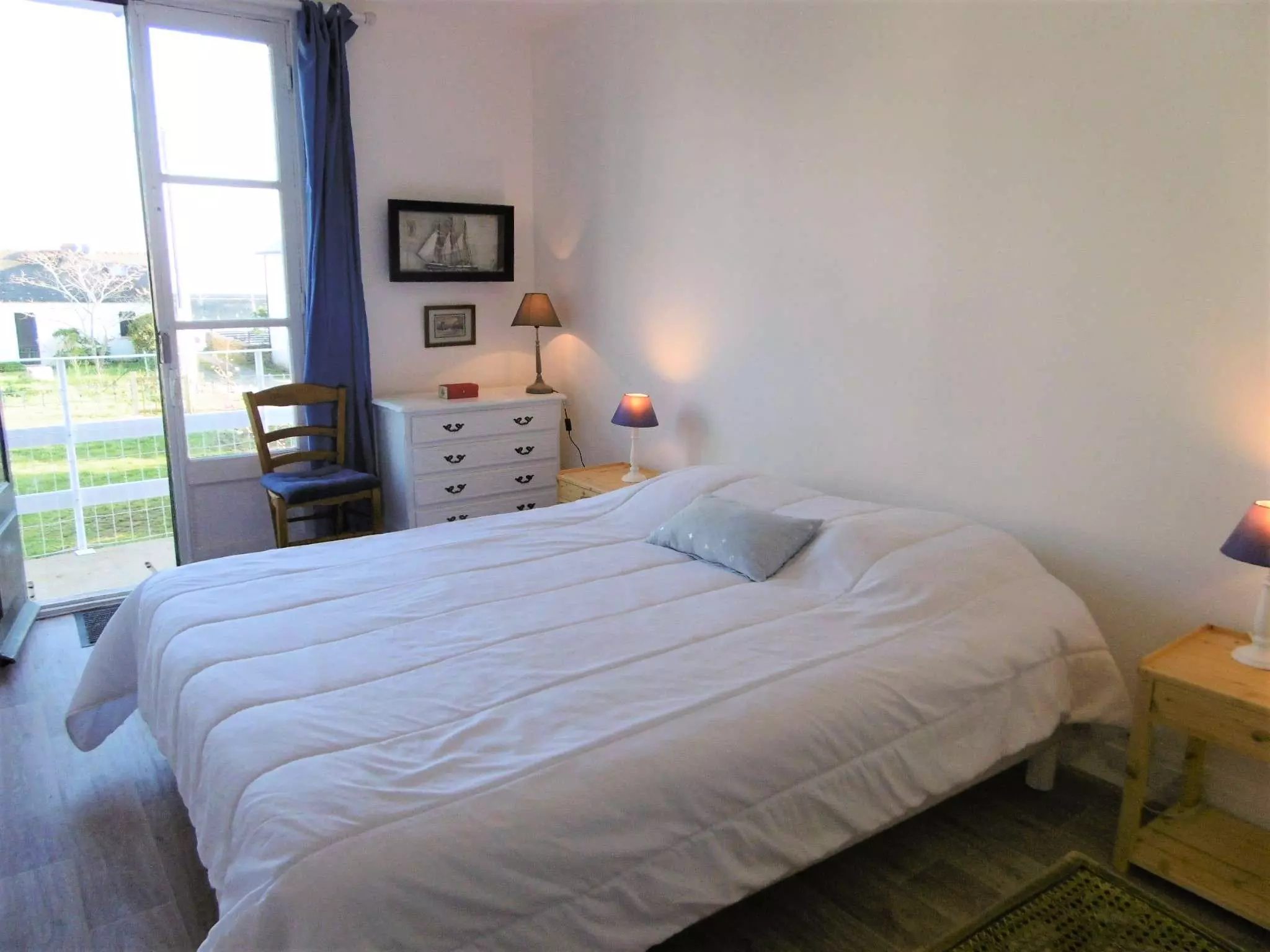 - Chambre 1 avec un accès sur la terrasse : un lit double en 160 et une commode