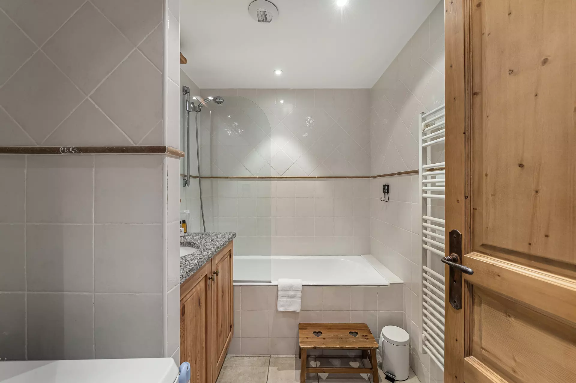 - Une salle de bains avec baignoire