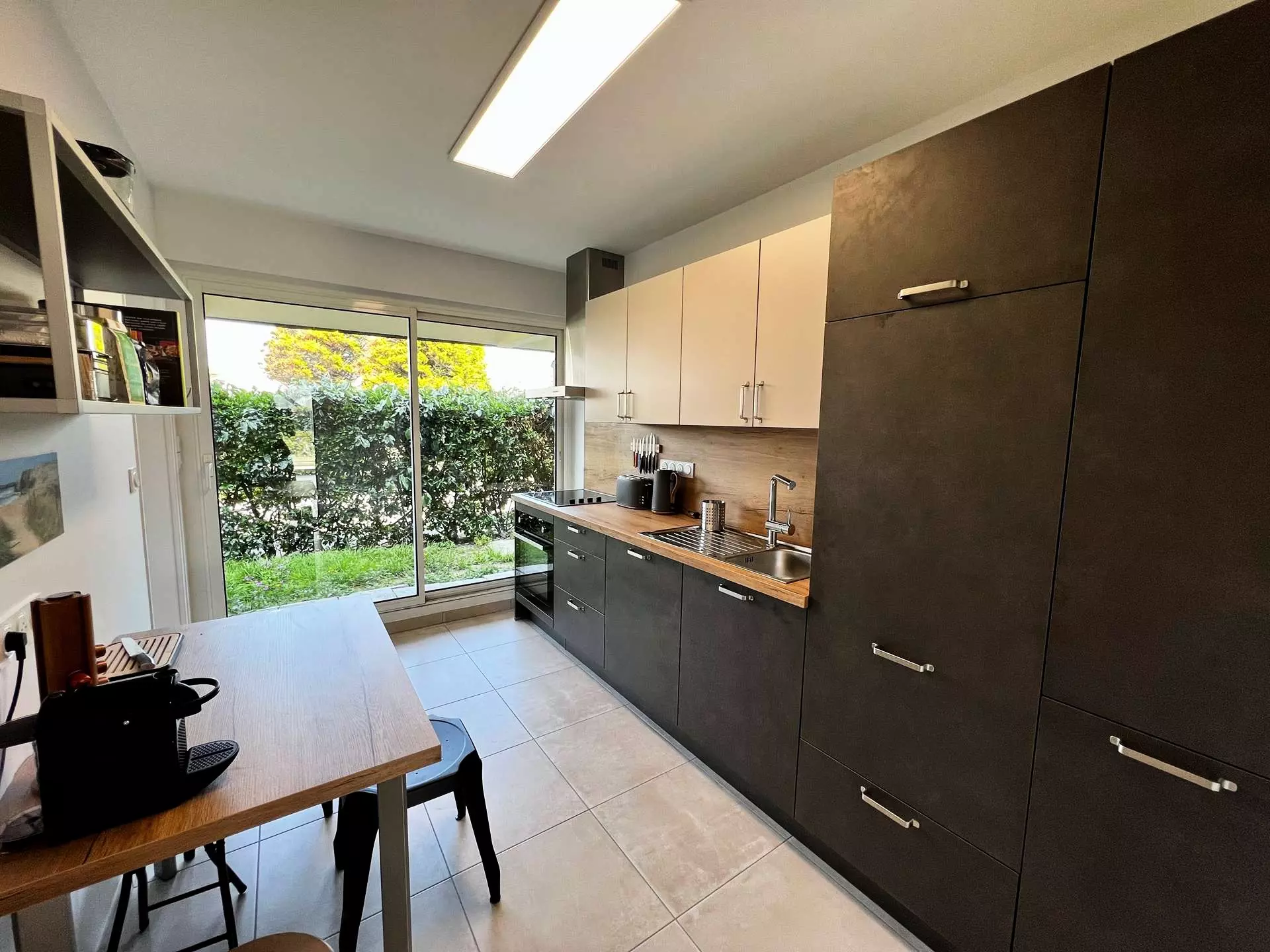 Un jardin clôturé avec mobilier (table, chaises et chaises longues) exposé PLEIN SUD vient compléter ce bien.