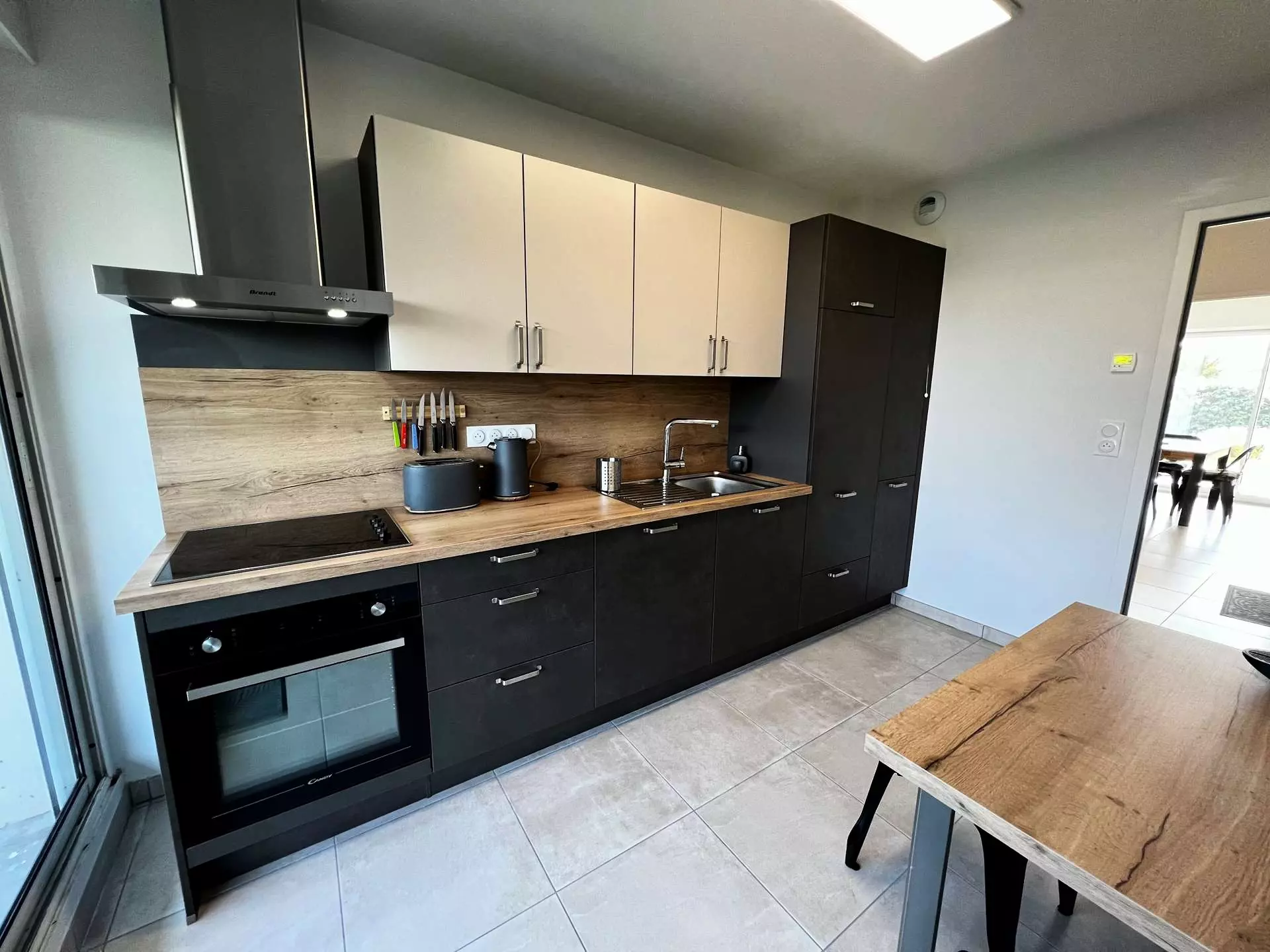 - Une cuisine entièrement équipée (four, hotte, réfrigérateur + congélateur, lave-vaisselle, micro-onde, plaque électrique, bouilloire, grille-pain, cafetière, mixeur),