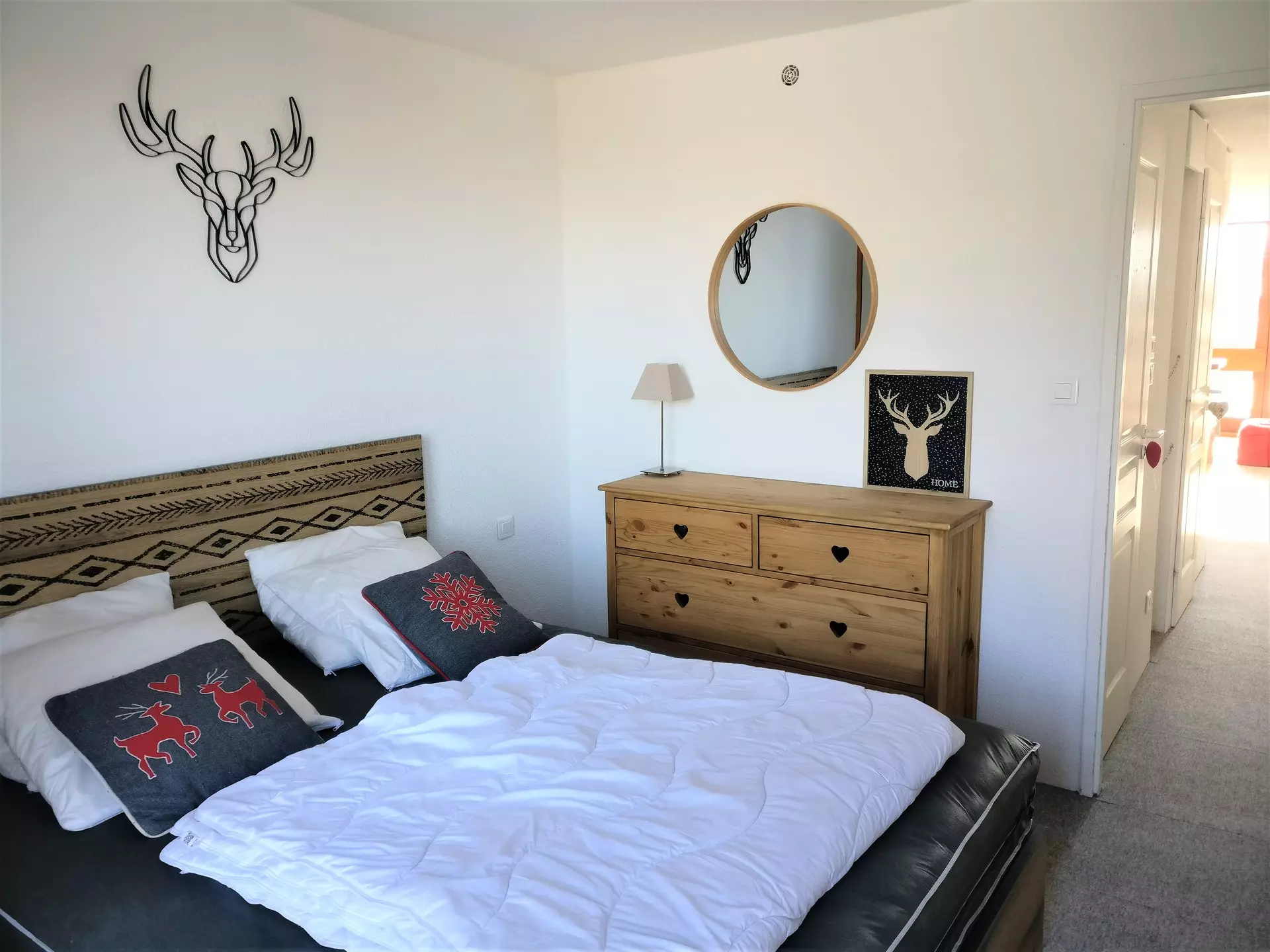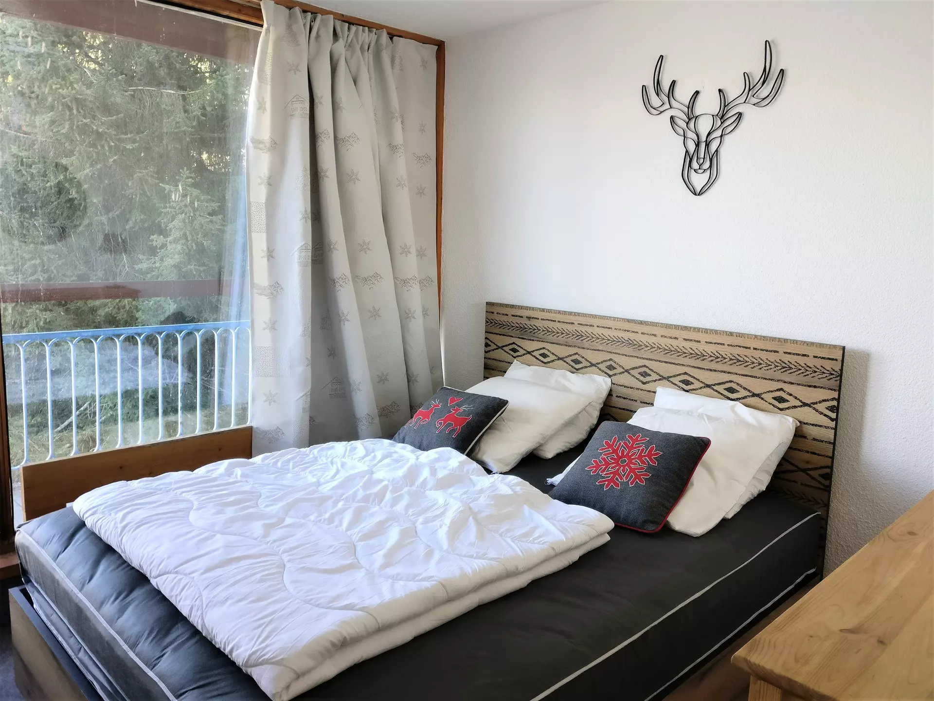 Chambre équipée de 1 lit double en 160cm, balcon exposé Nord-Est