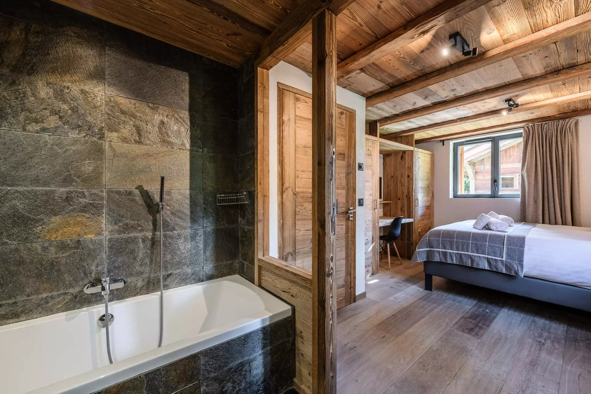 Ce chalet classé 5* situé dans le hameau des Bois, allie tradition et modernité, avec son vieux bois et ses équipements haut de gamme tels qu'un sauna et un bains à remous, le tout avec une vue imprenable sur le Mont Blanc.