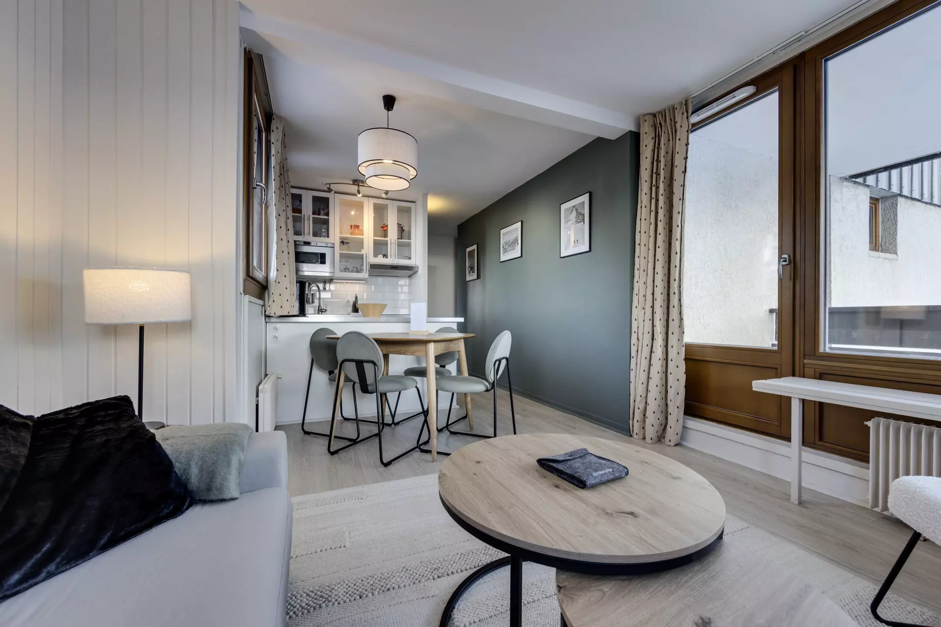 - Séjour avec canapé convertible (120*190) + TV + accès balcon
