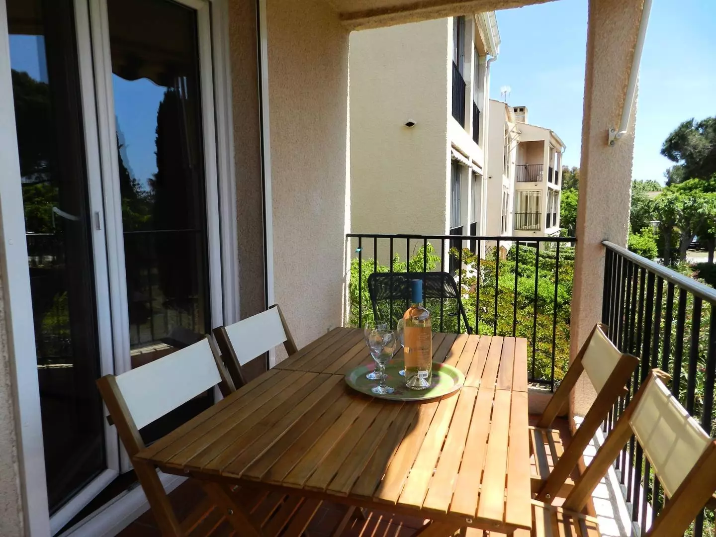 Le logement : Cet appartement de vacances situé au 1er étage vous propose une terrasse exposée Sud-Ouest, il comprend un séjour climatisé avec un canapé convertible 160x200 ouvrant sur l'exterieur , d'un coin cuisine équipé, d'une chambre avec un lit de 140x190, une salle de bain avec wc.