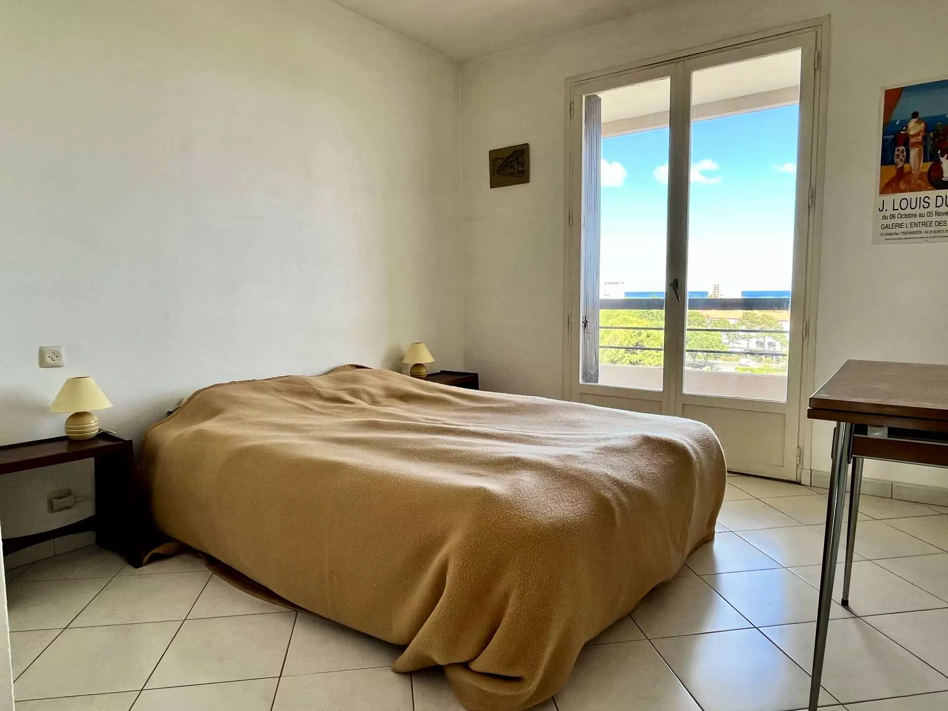 Cet appartement de vacances climatisé, situé au 9ème étage, se compose d'un séjour avec canapé convertible 2 places, une cuisine équipée, une chambre avec 1 lit 2 places, un coin nuit avec 2 lits superposés 1 place, une salle d'eau avec WC.