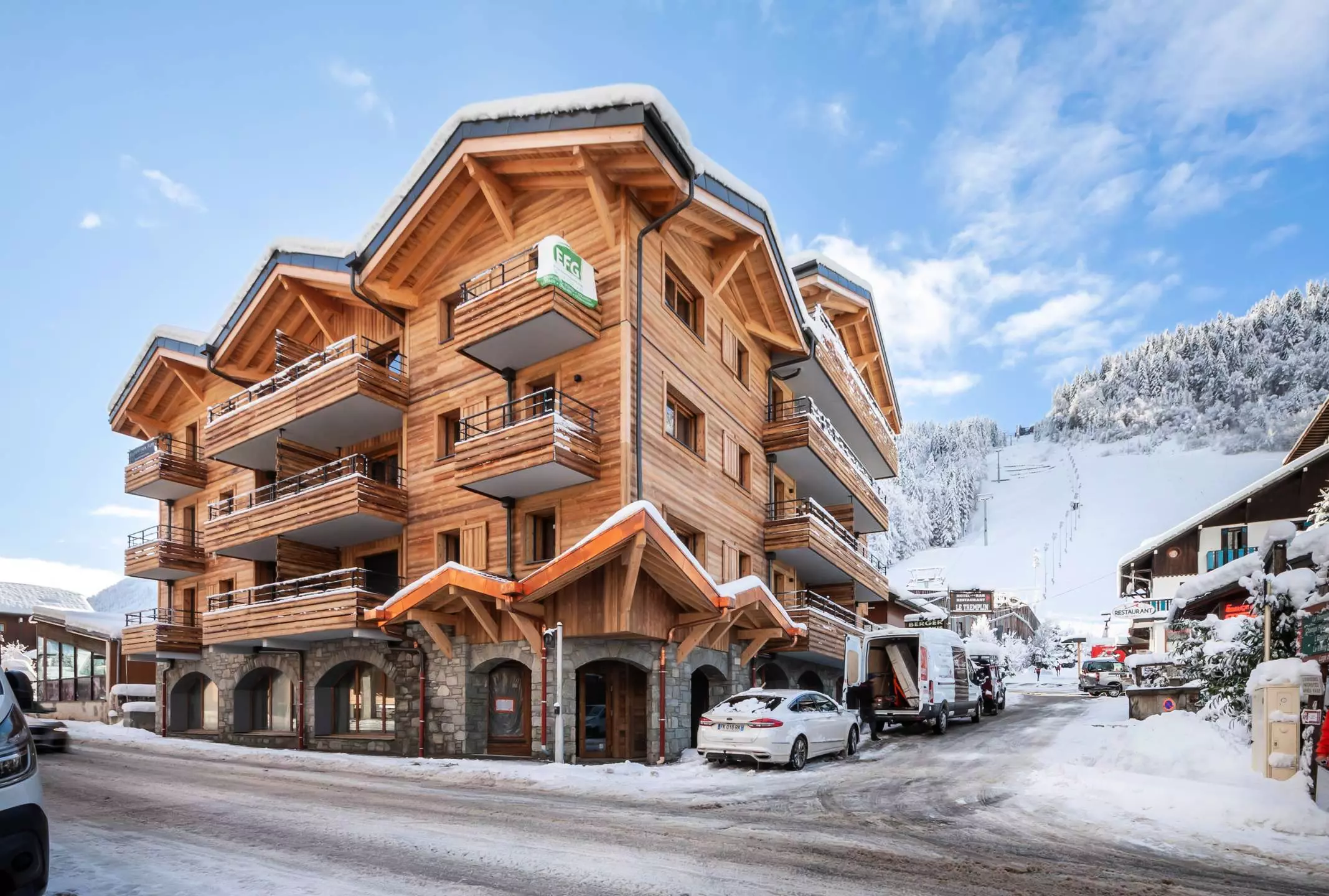 Ce superbe appartement deux chambres au 1er étage d'une résidence neuve avec ascenseur, au coeur du village et au pied des pistes du domaine de Morzine-Les Gets.