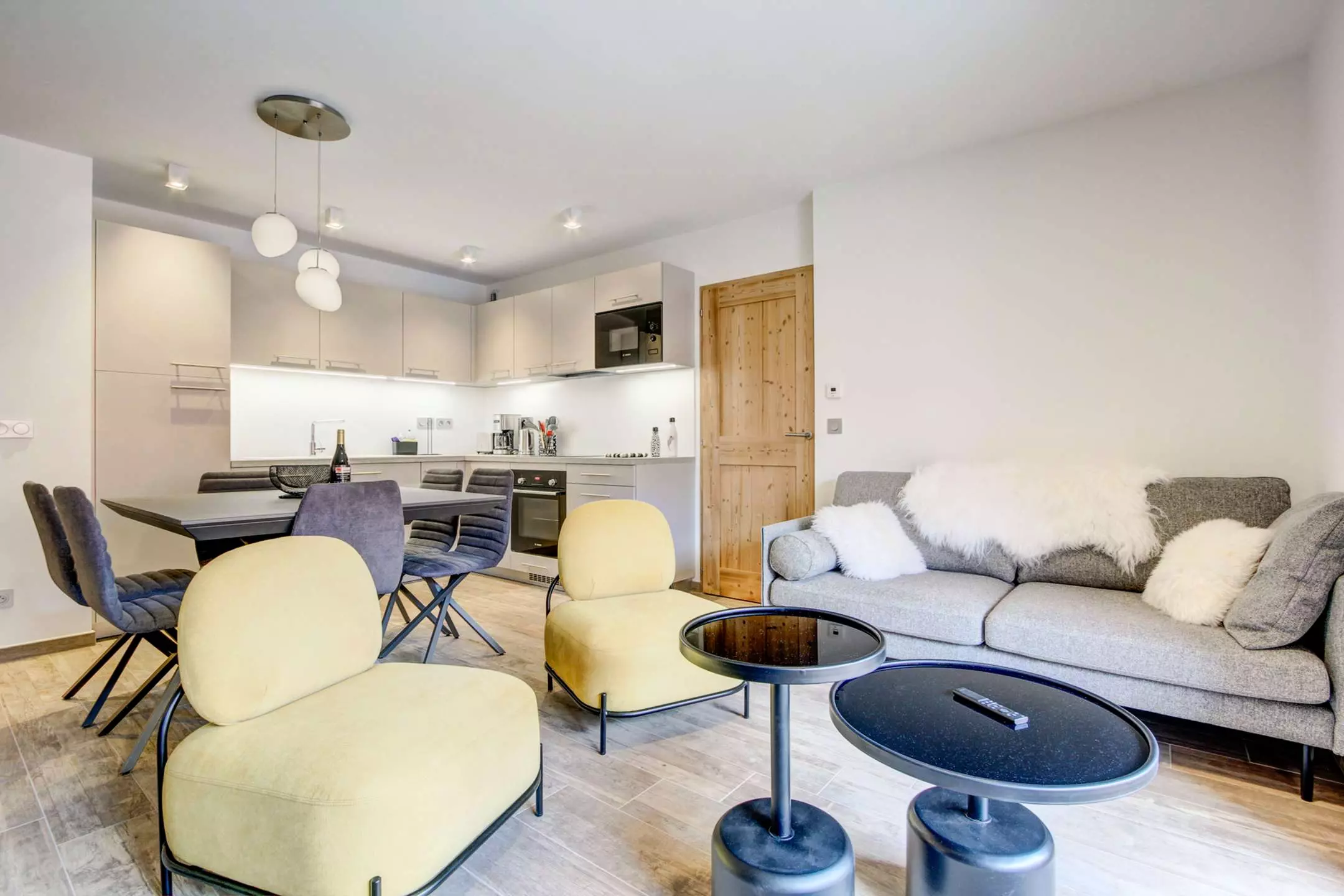 Ce superbe appartement deux chambres + coin cabine au 2ème étage d'une résidence neuve avec ascenseur, au coeur du village et au pied des pistes du domaine de Morzine-Les Gets.