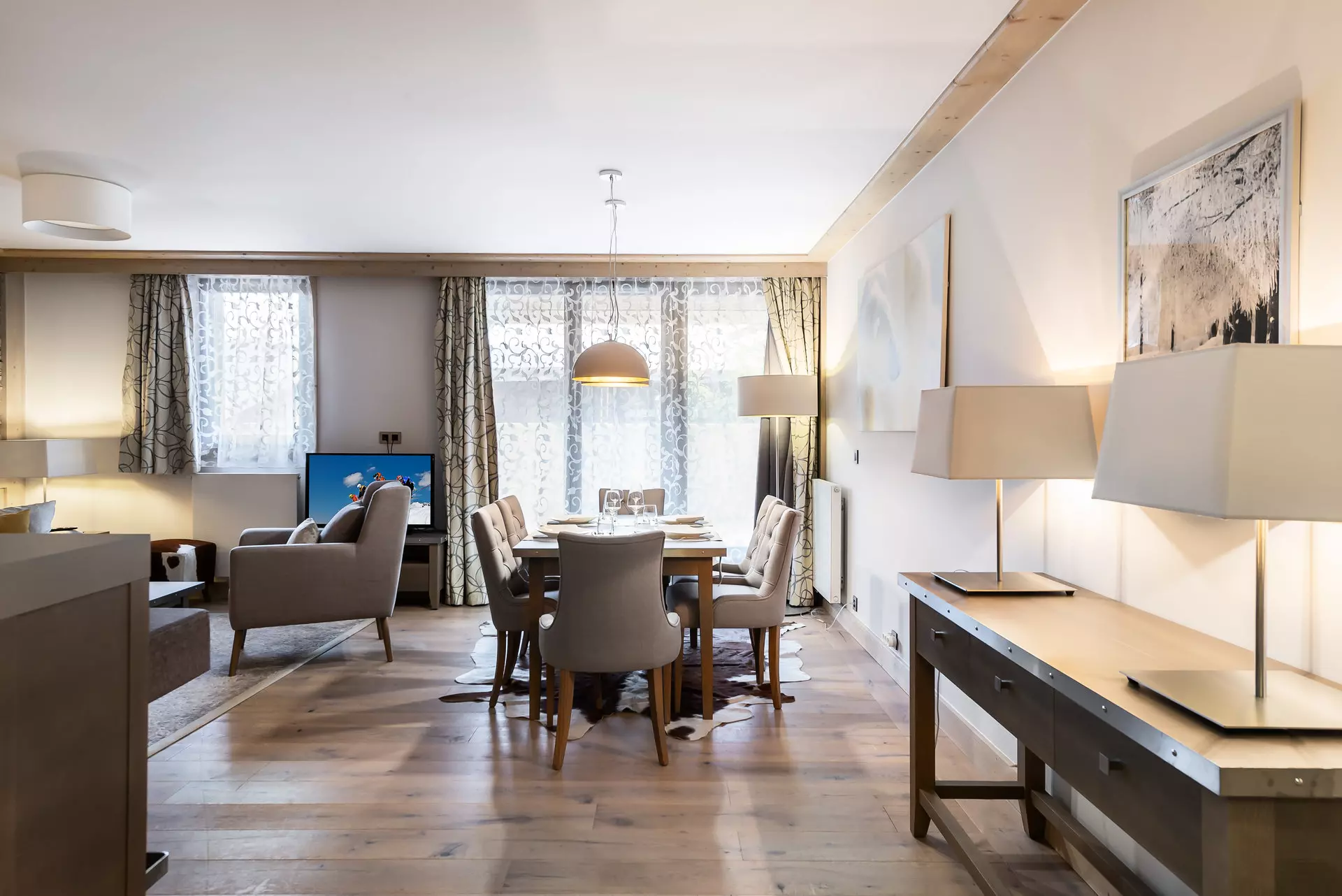 - Séjour avec télévision, espace repas