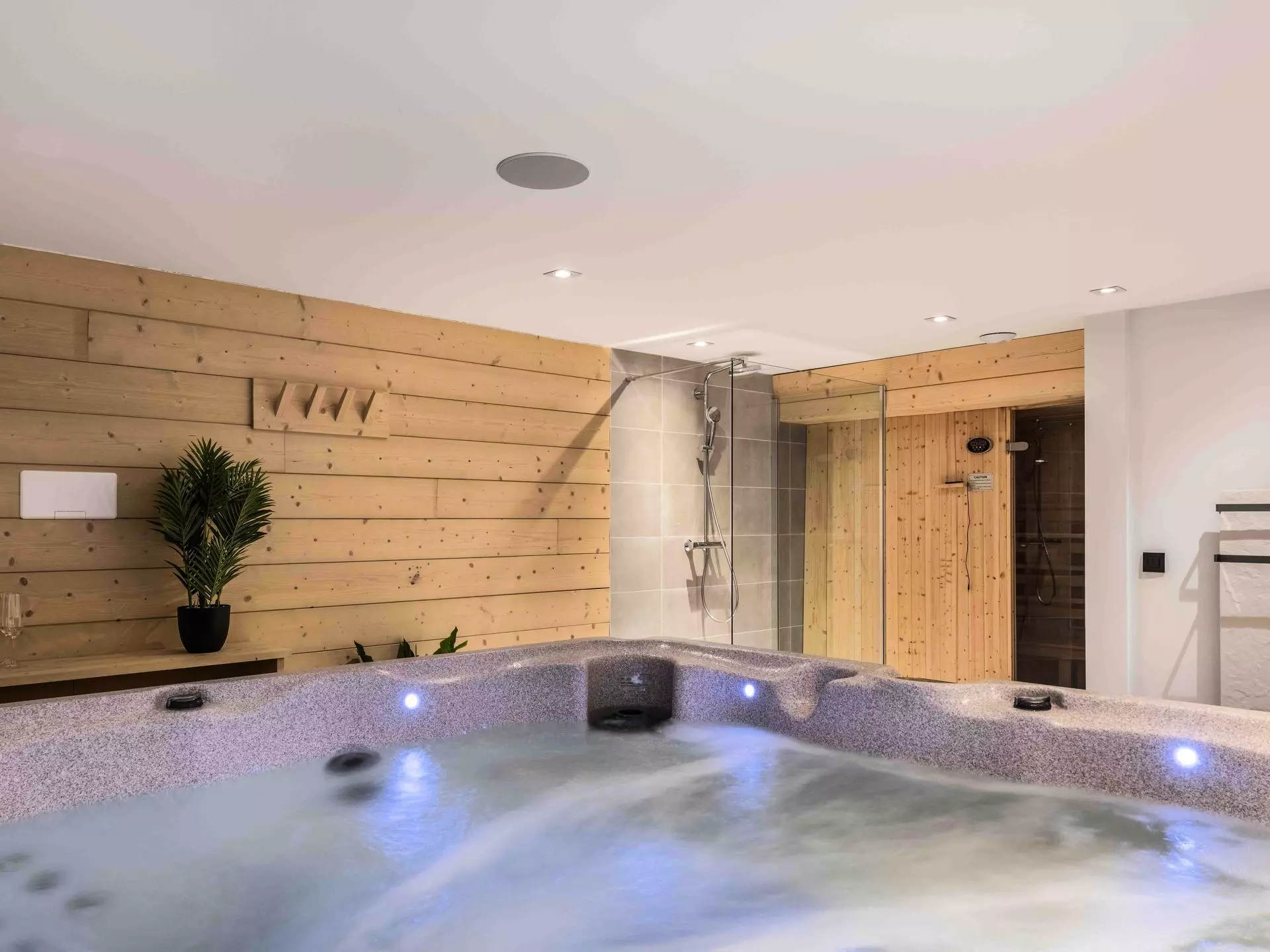 - Espace Spa avec sauna à infrarouge, bains à remous et douche à l'italienne, WC séparés
