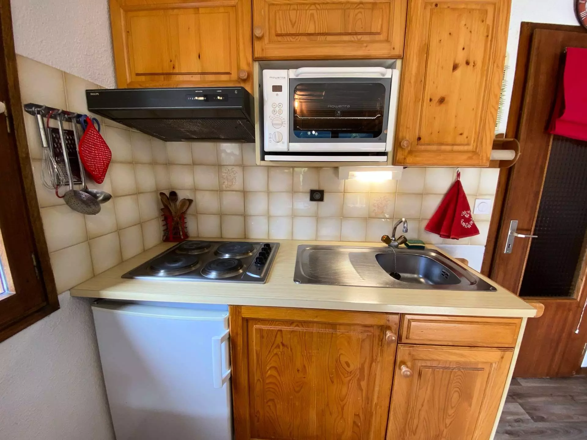 Cet appartement de vacances situé au rez de chaussée, comprend un séjour avec canapé convertible 2 personnes, coin repas et télévision donnant sur un balcon sud, une kitchenette, une chambre avec un lit double, un coin montagne avec 2 lits superposés, une salle de bains et un WC indépendant.