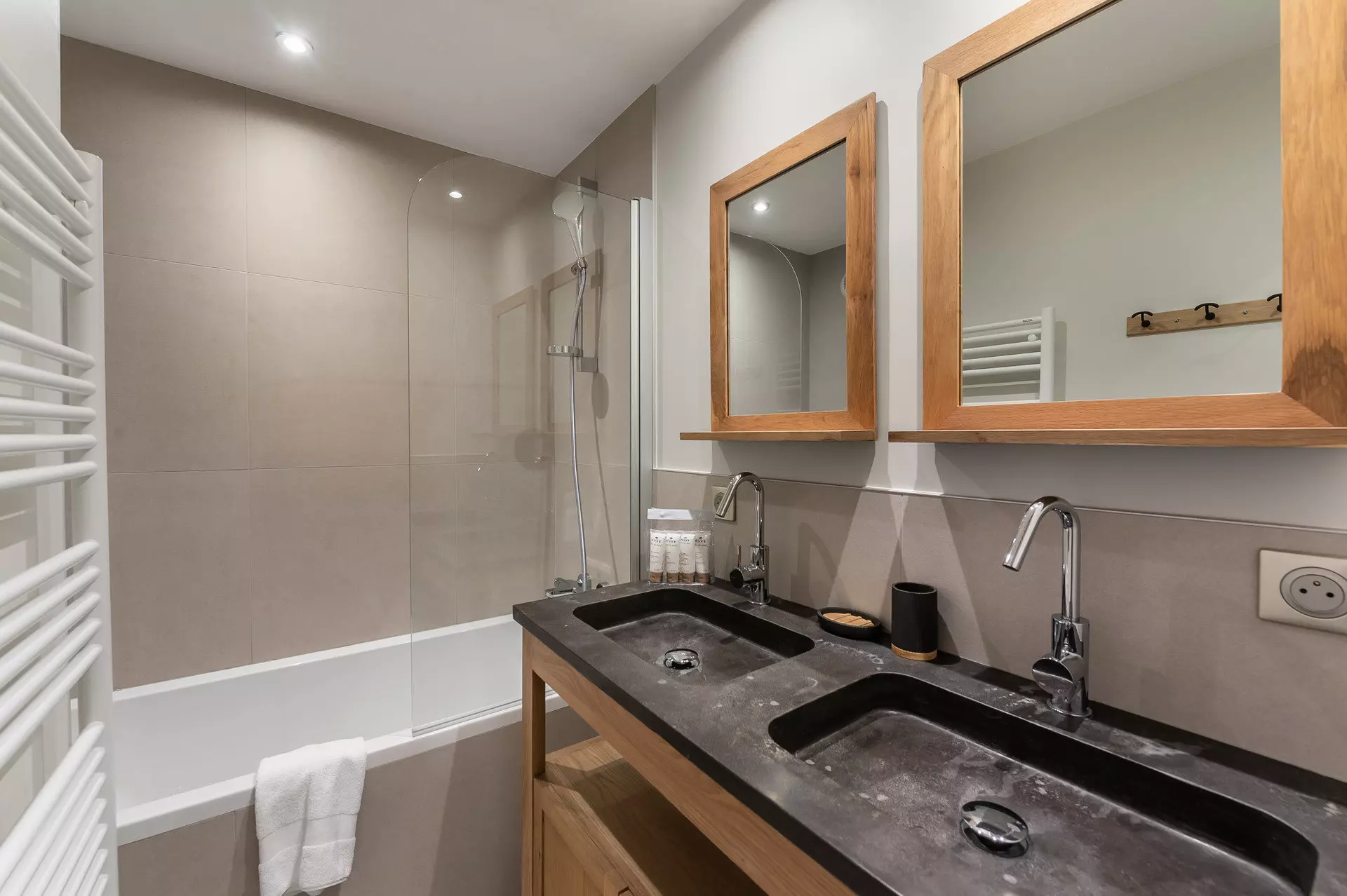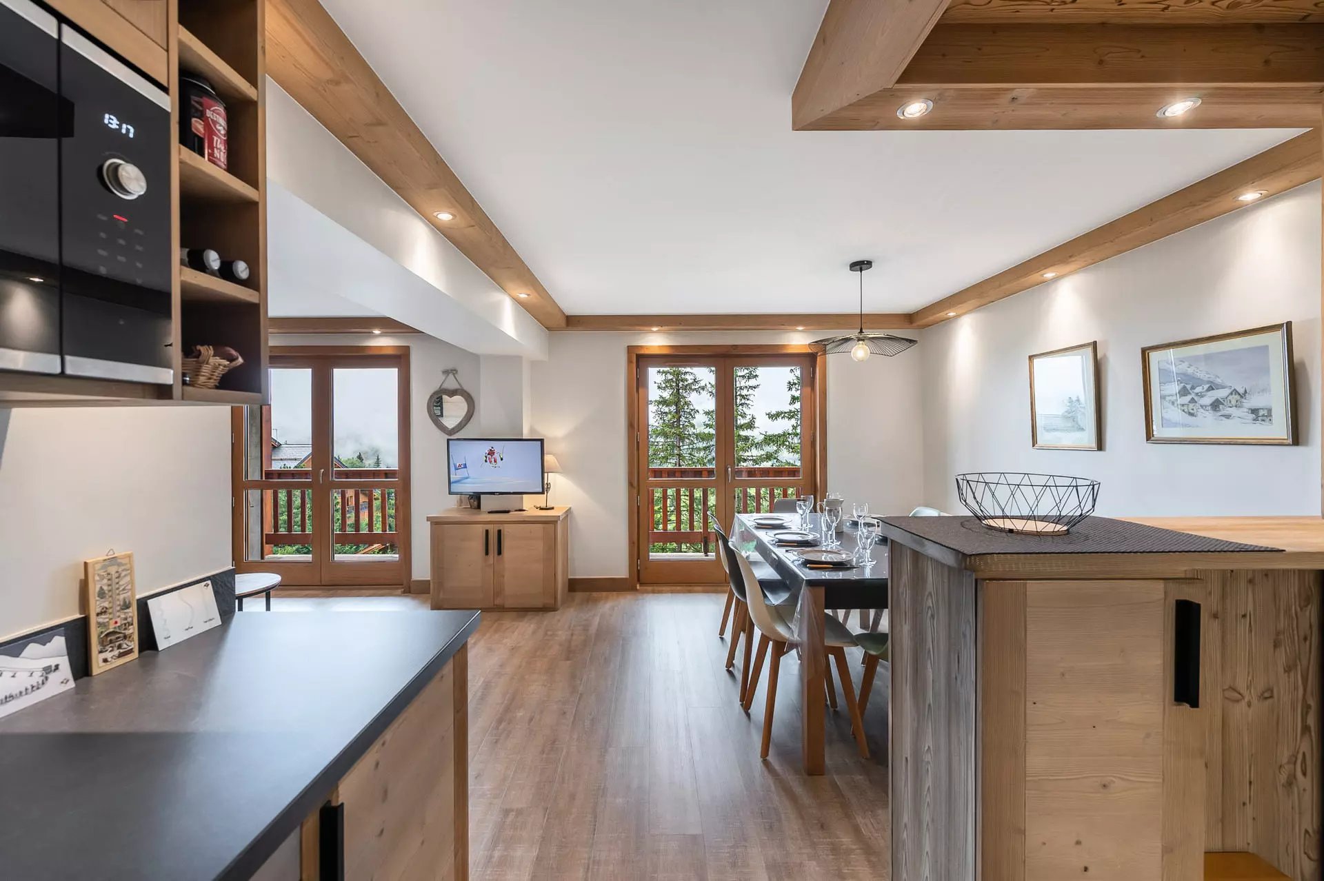 - Cuisine ouverte entièrement équipée : réfrigérateur, four, micro-onde, lave-vaisselle, plaque de cuisson, grille-pain, Nespresso, raclette et service à fondue, frigo