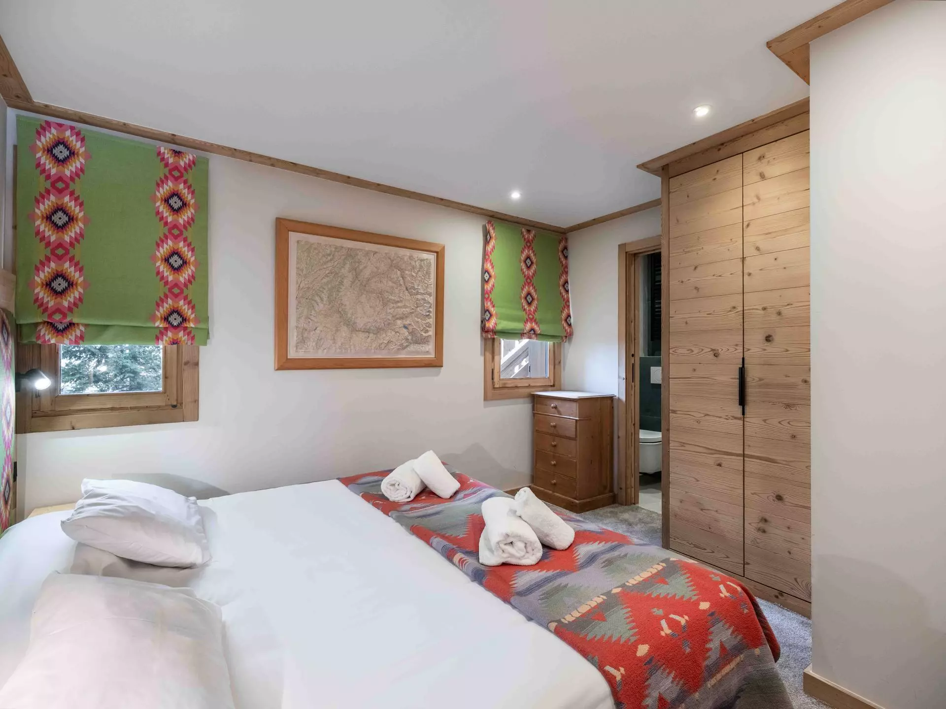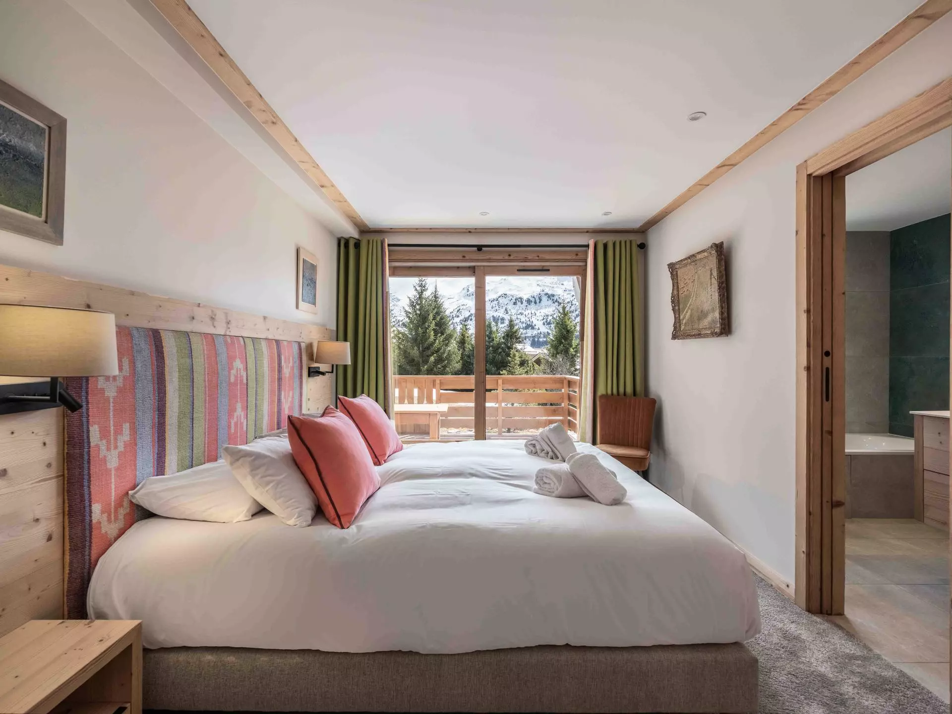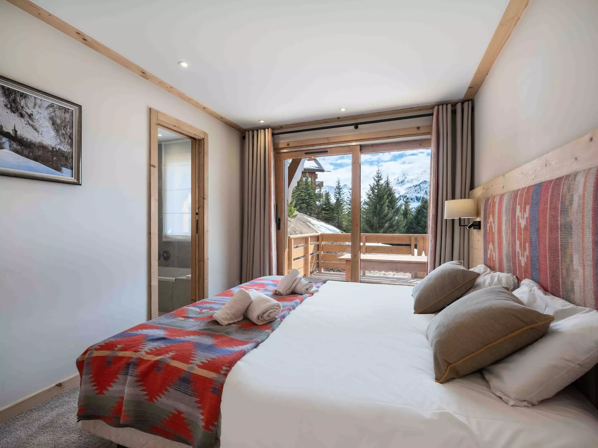 - Chambre 2 : lit double séparable (190x200) avec accès balcon, en suite avec salle de bain et WC