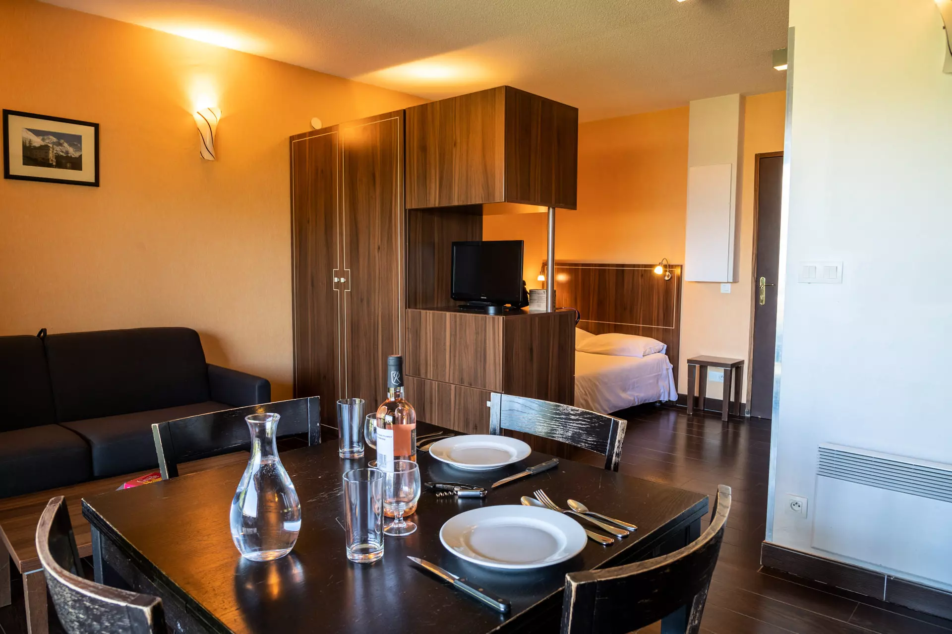 - un séjour avec 1 convertible et une TV