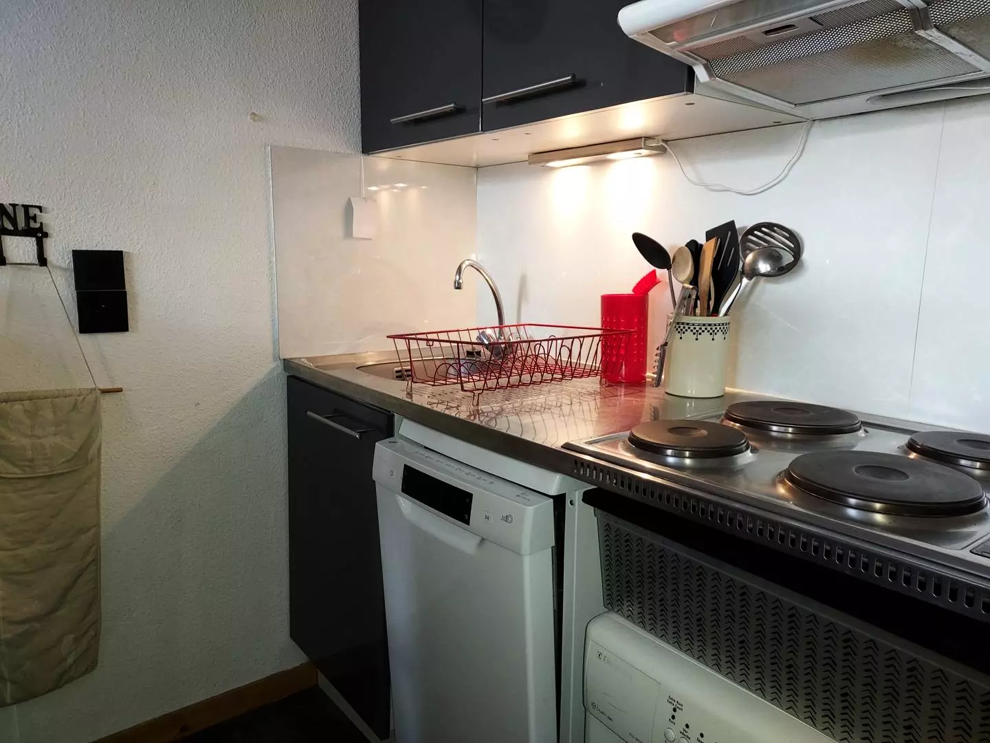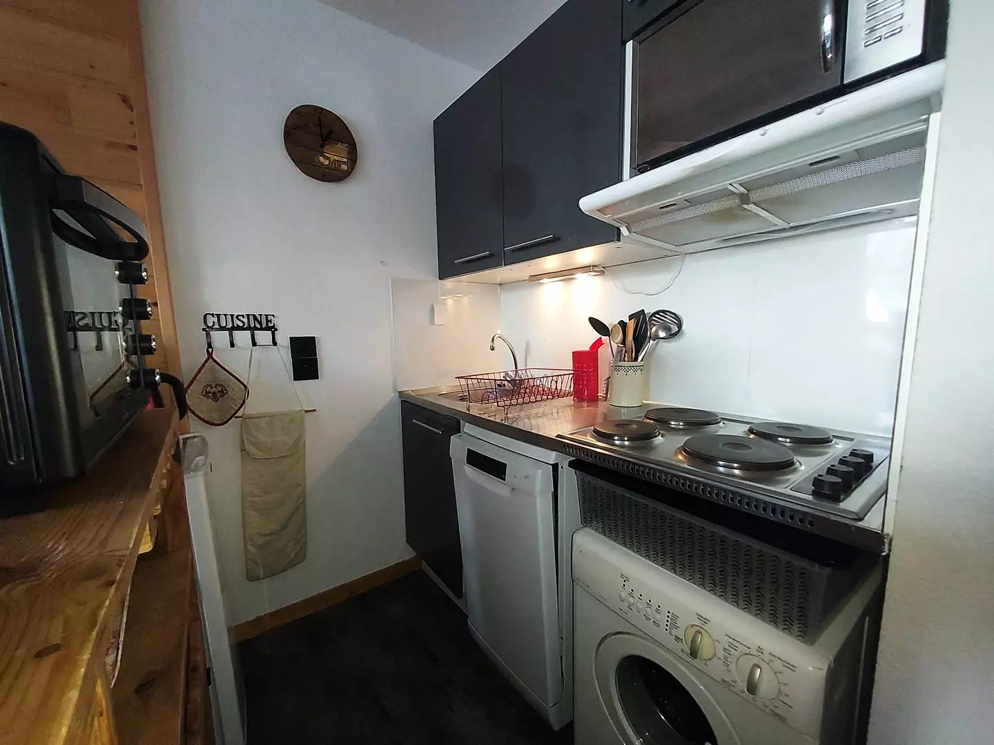 - Cuisine américaine équipée de 4 plaques électriques, lave-linge, four micro ondes et mini four, réfrigérateur, lave vaisselle.