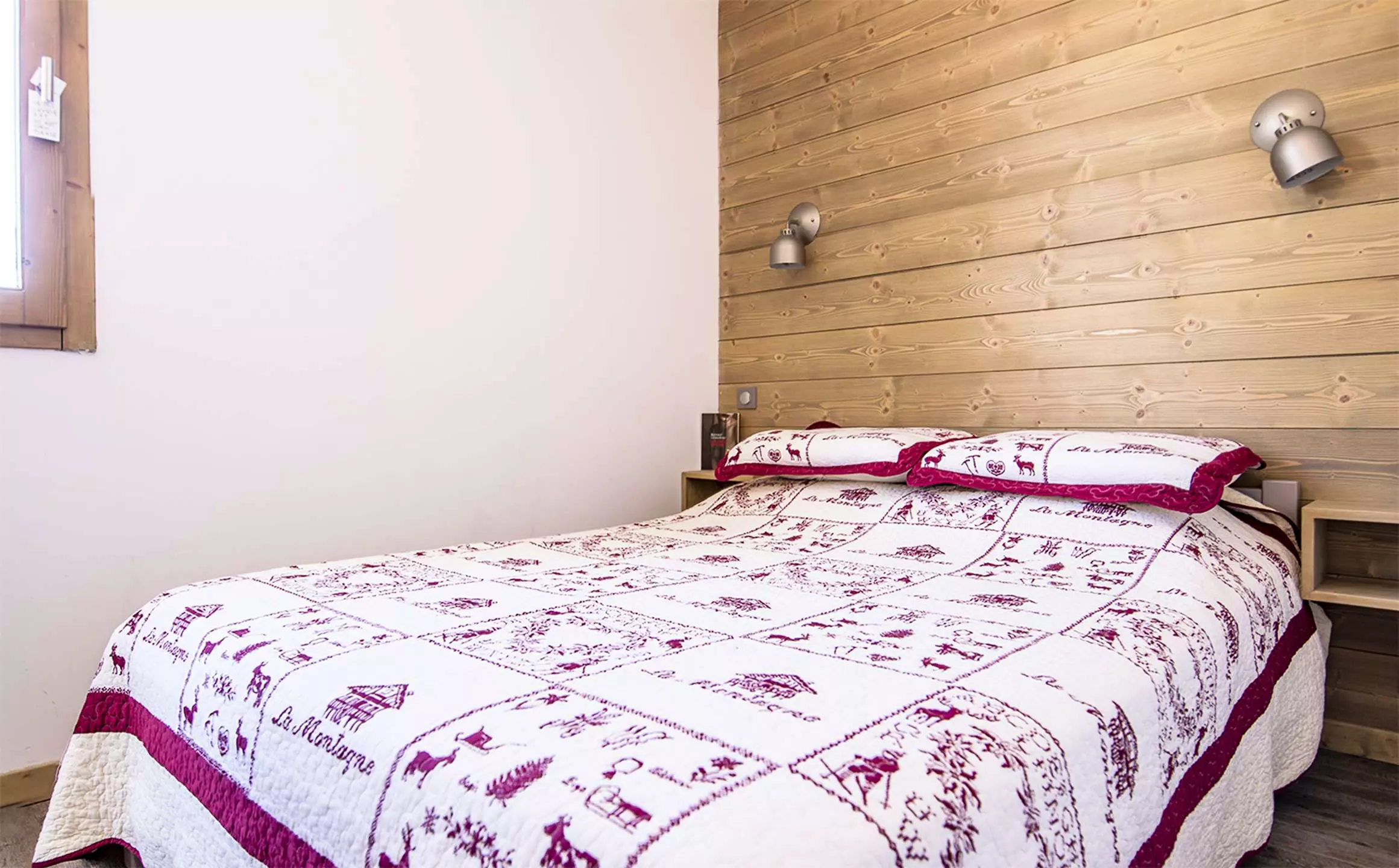 un lit double dans la première chambre et un ensemble de lits superposés dans la seconde chambre. Les lits sont équipés de couettes.