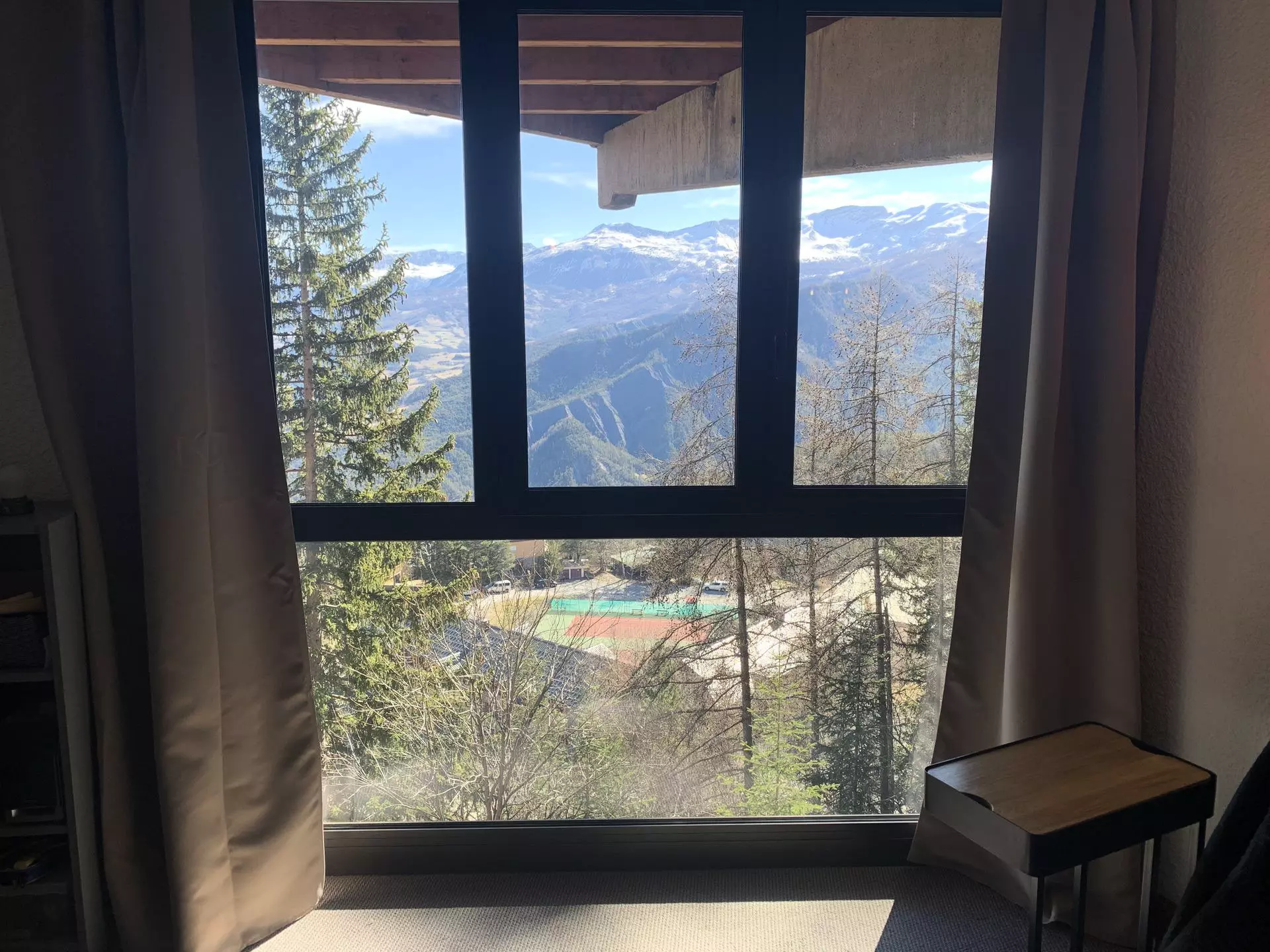 COMMENTAIRES : Studio très agréable et lumineux, idéalement situé près des pistes et de la galerie commerciale. Superbe vue sur la vallée et la montagne. Box à skis.