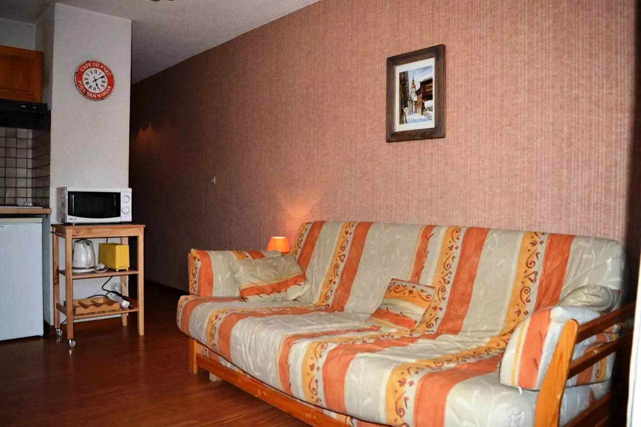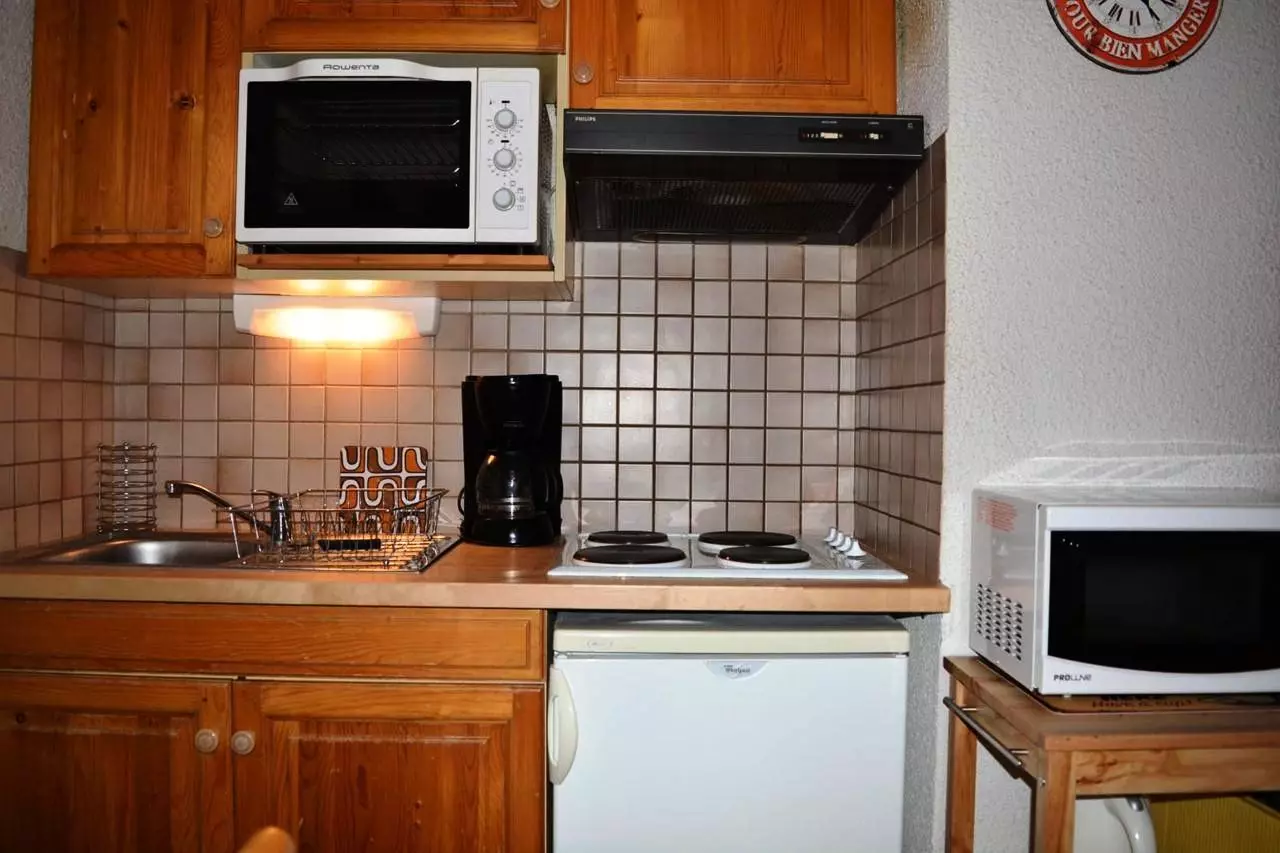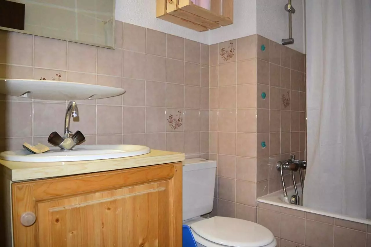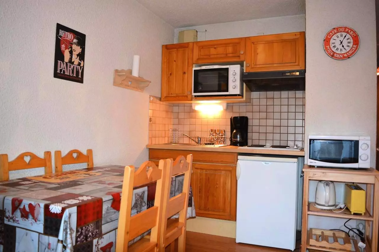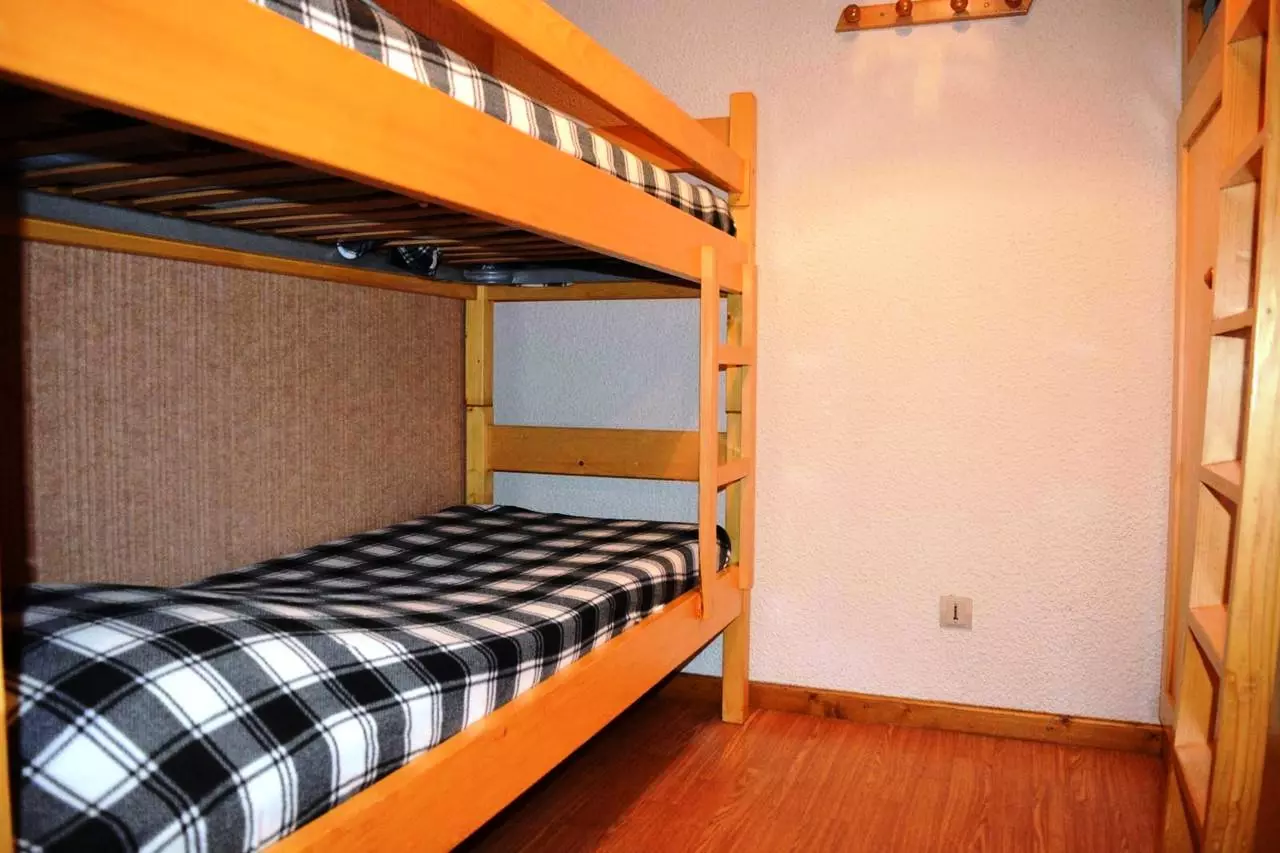 Cet appartement de vacances situé au niveau -2, comprend un séjour avec 1 canapé convertible 2 places et télévision, un accès balcon sud avec vue sur le domaine skiable, un coin cuisine équipé, un coin nuit avec 2 lits superposés , une salle de bains avec WC.