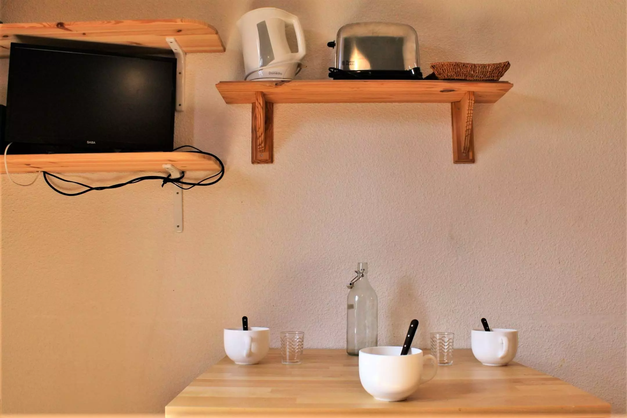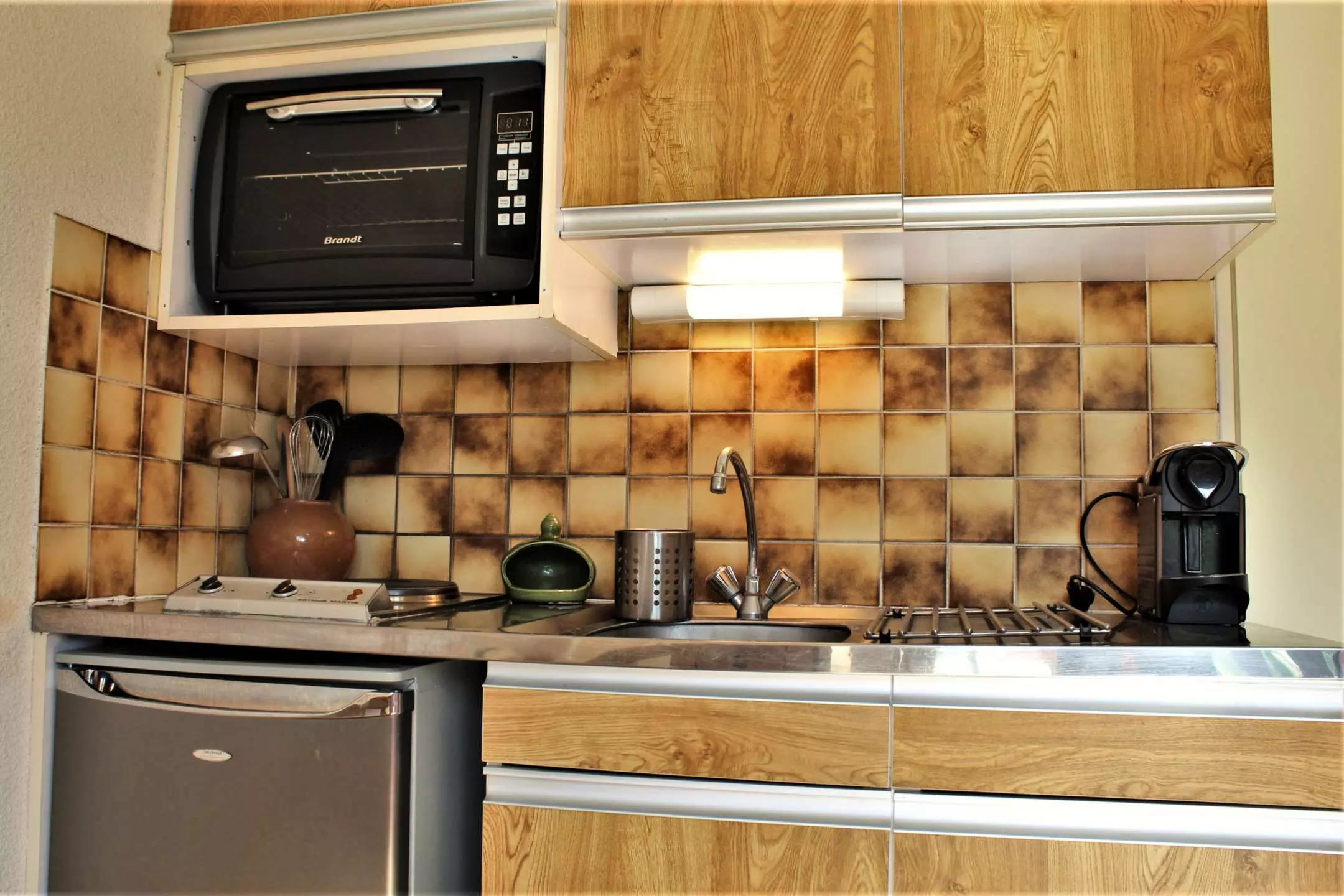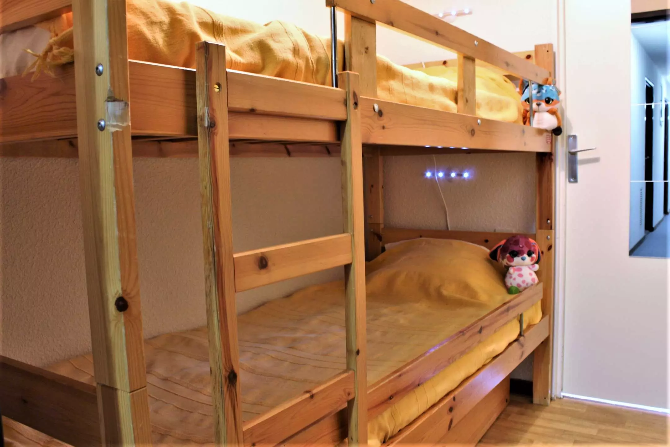 Situé sur le bas de la station dans une résidence au calme, ce studio se compose d'une entrée avec deux lits superposés et d'un séjour avec canapé clic-clac 2 personnes avec télévision. L'entrée est séparée du séjour par une porte. La cuisine est équipée d'un réfrigérateur, de deux plaques de cuisson électriques, d'un four et d'une cafetière électrique. La salle de bain est composée d'une baignoire, et les WC sont indépendants.