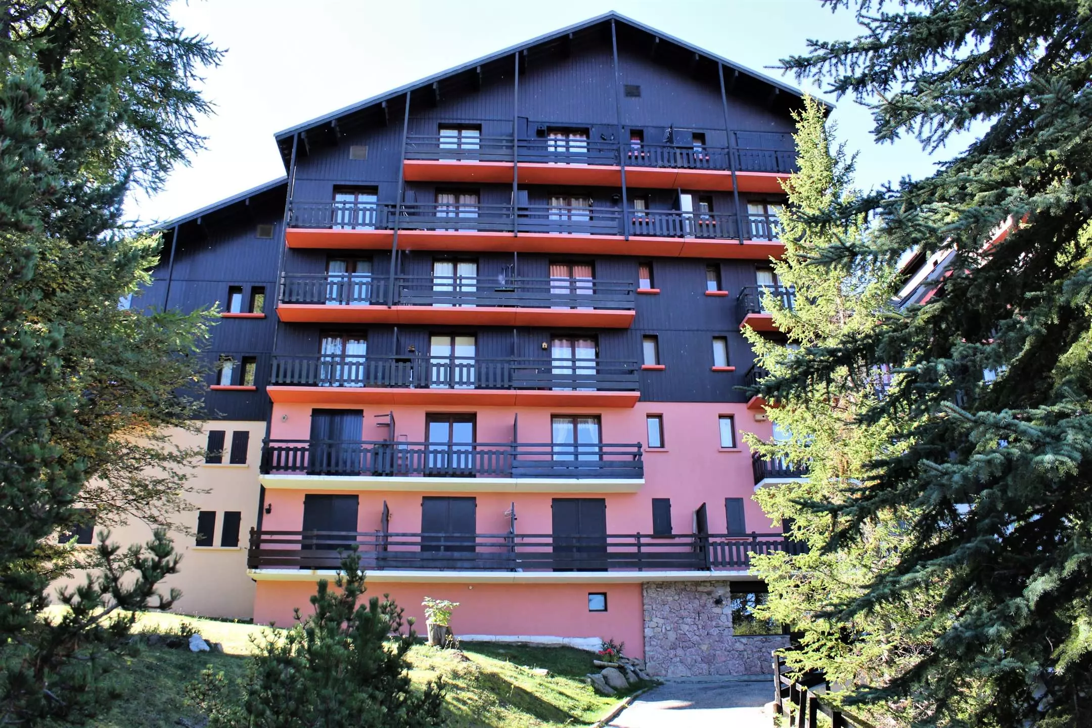 Distribués au coeur d'une forêt de mélèzes, les bâtiments de bois favorisent l'accès direct à la montagne tout en fournissant de nombreux équipements de proximité : commerces, services de santé, activités de loisirs (cinéma, patinoire, piscine, luge sur rail...) et services de proximité (halte garderie, poste...).