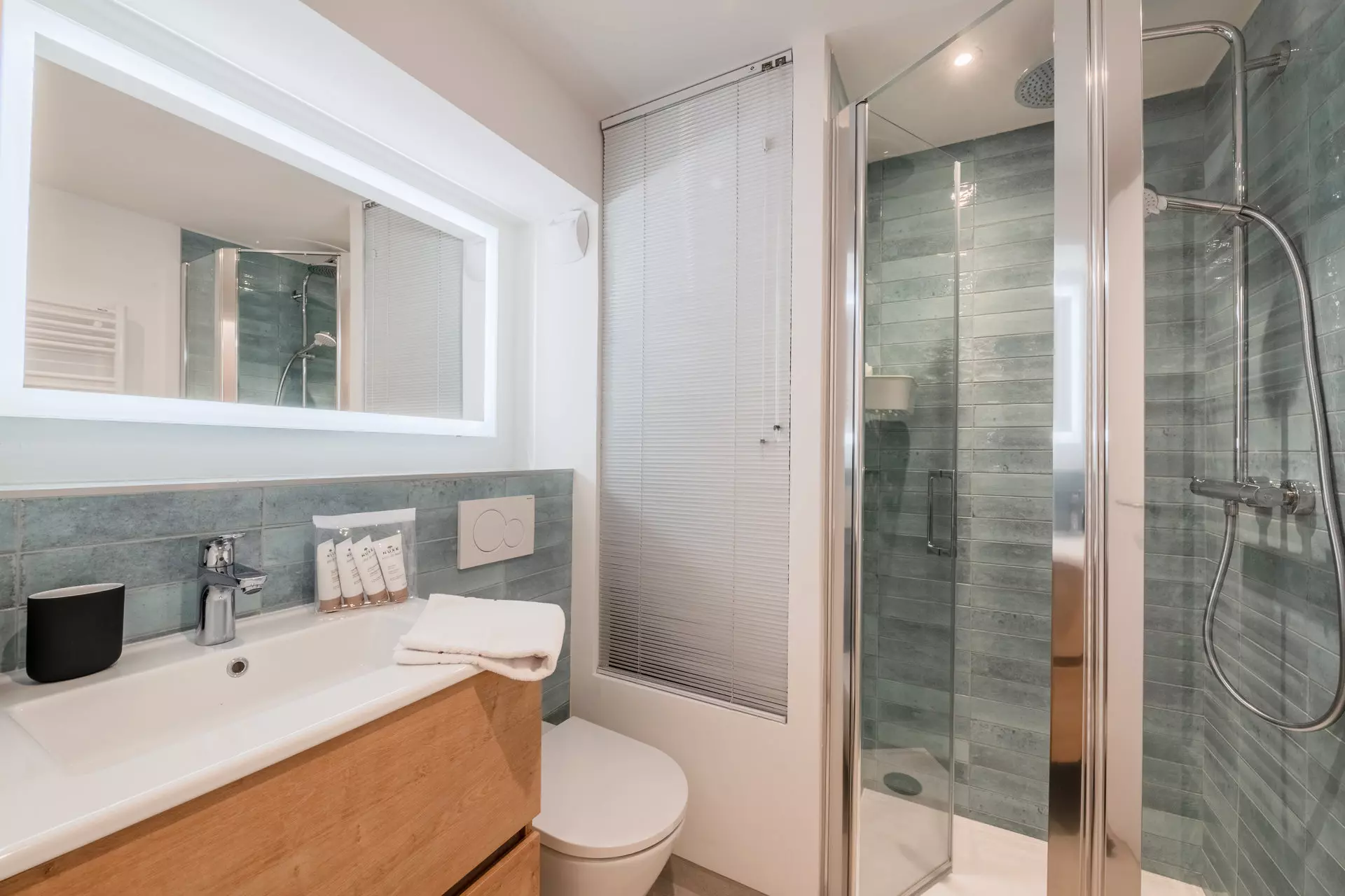- Douche, WC, sèche serviette