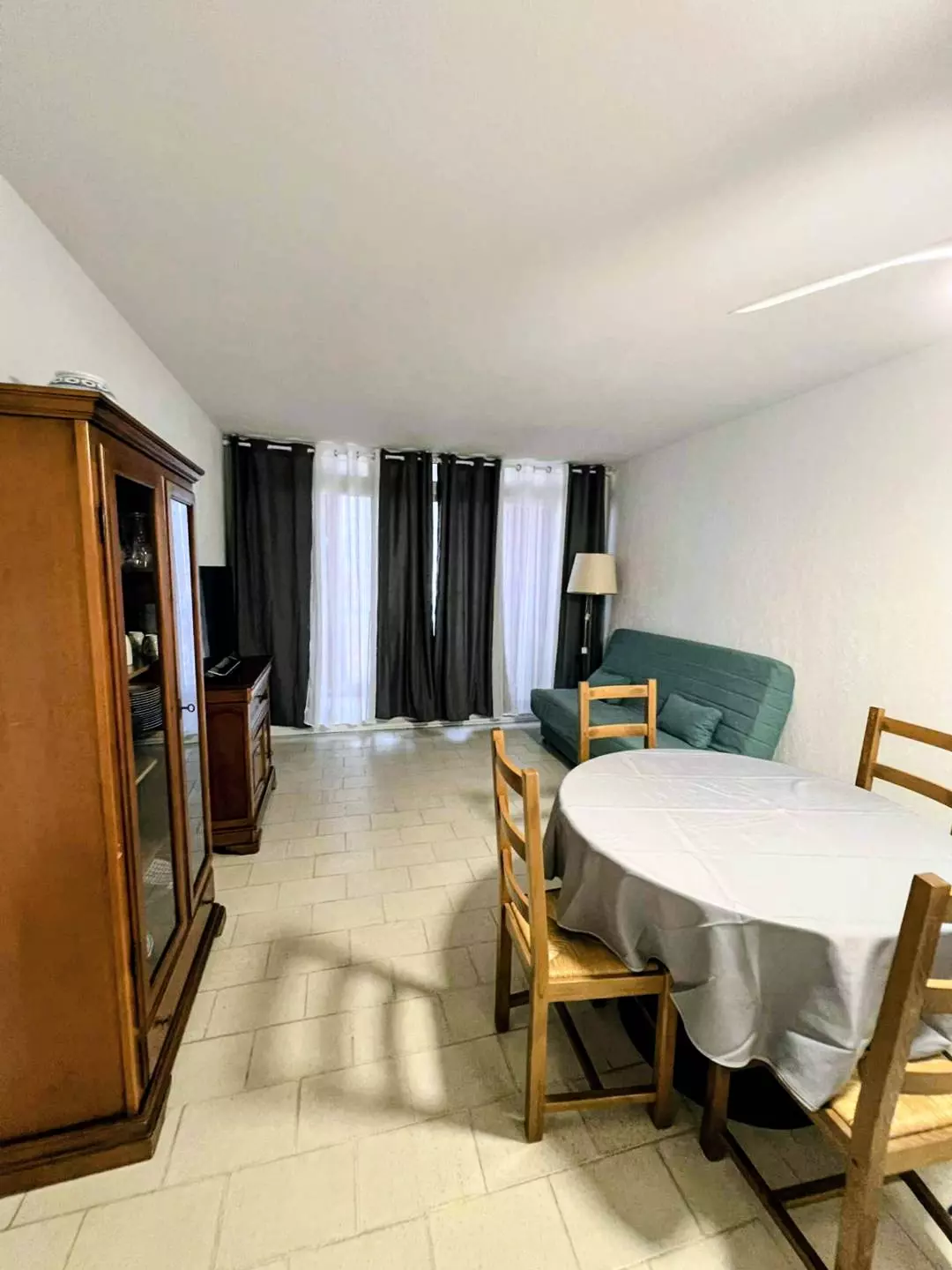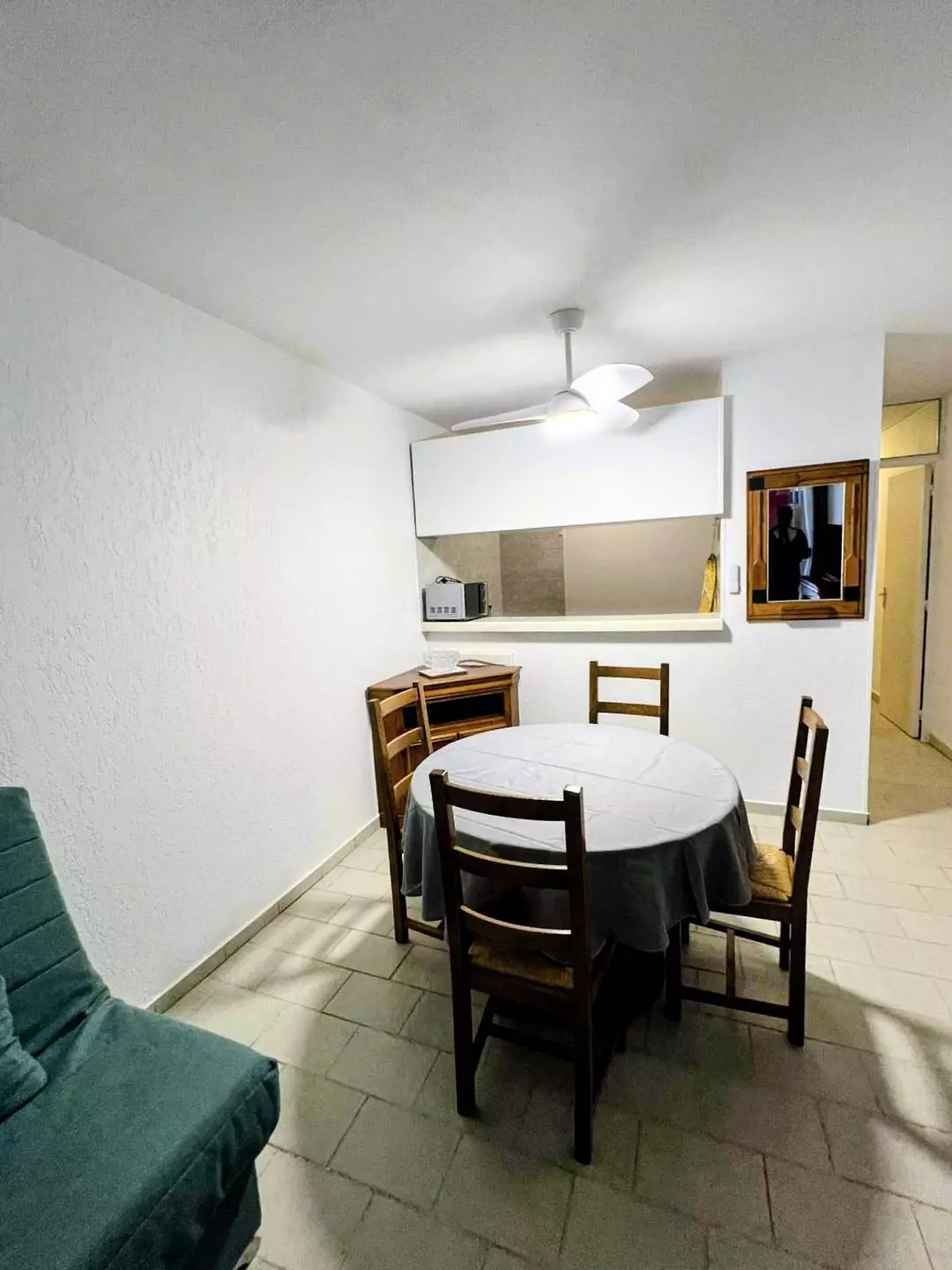 CENTRE VILLE - P2 dans une résidence sécurisée LE MEDITERRANÉE, en front de mer au coeur du Centre Ville, au 4 ème étage avec ascenseur. Séjour spacieux et lumineux (TV, ventilateur au plafond) avec canapé convertible en 140 cm donnant sur une loggia couverte de 5m² avec mobilier, vue latérale mer. Une cuisine équipée (micro-ondes, frigo freezer, plaque de cuisson), une chambre avec un lit double en 160 cm , une salle de bain avec lave linge et un wc séparé. Venez profiter de ce bel appartement au cœur du Centre ville, avec toutes les activités nautiques et les commerces à proximité. Meublé et équipé pour 4 personnes.