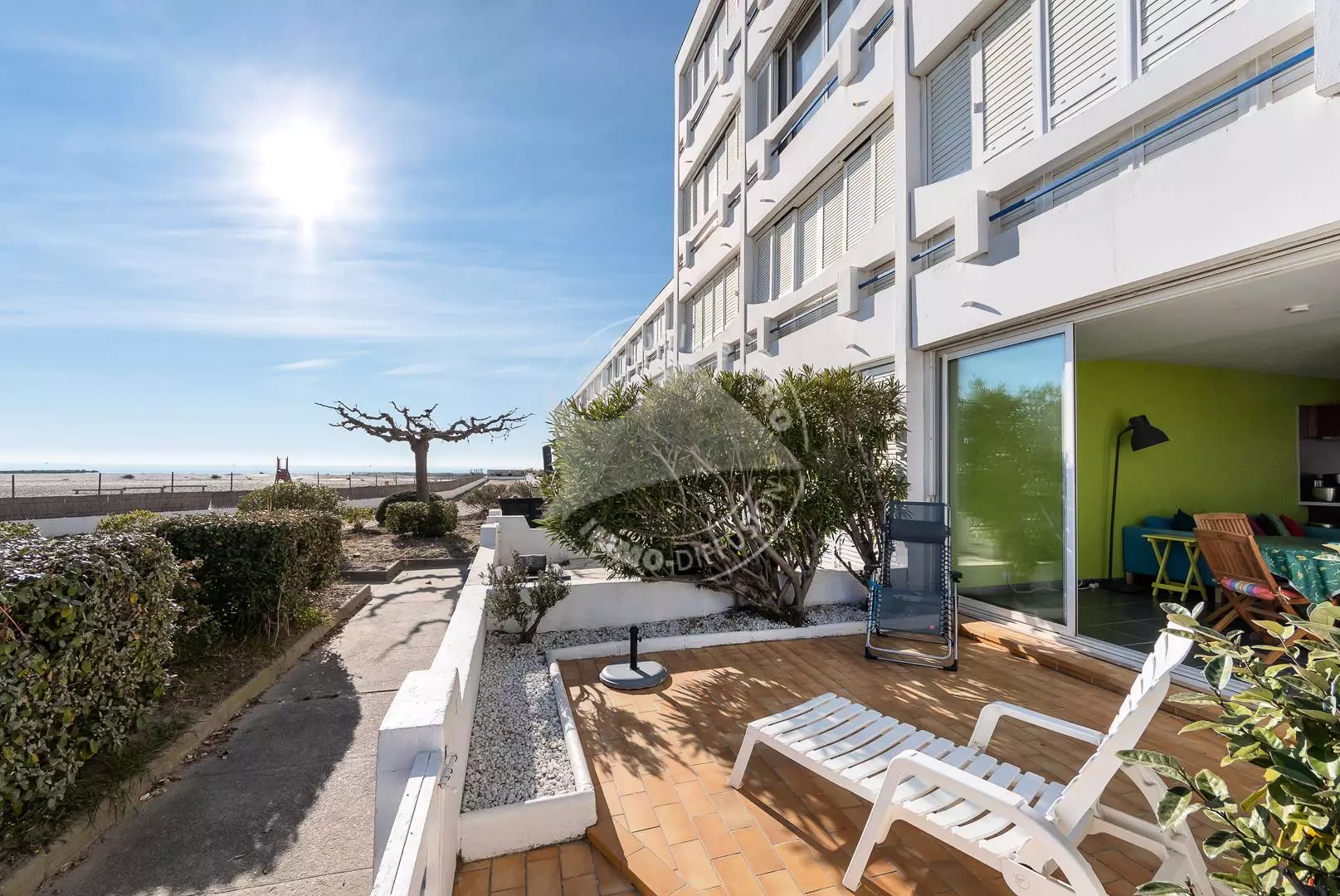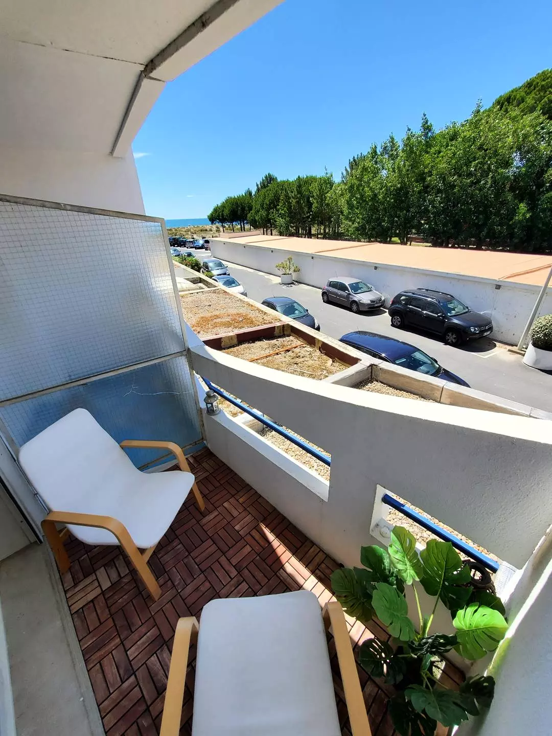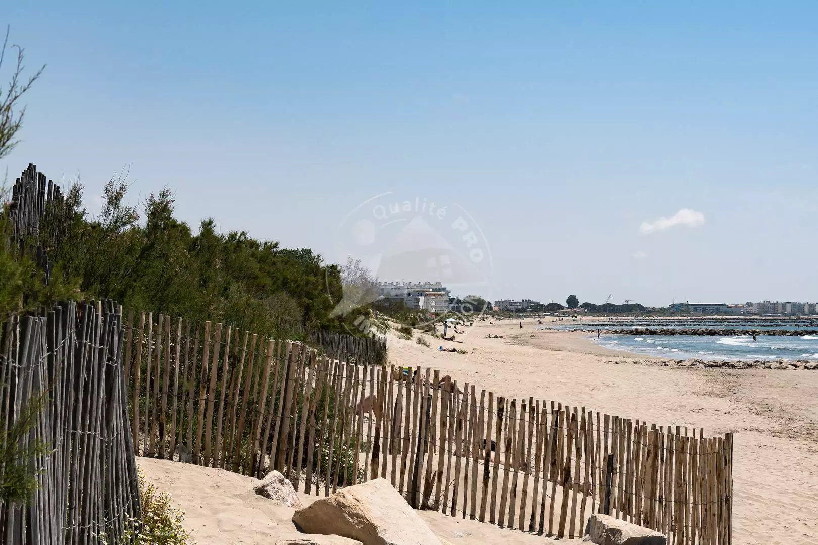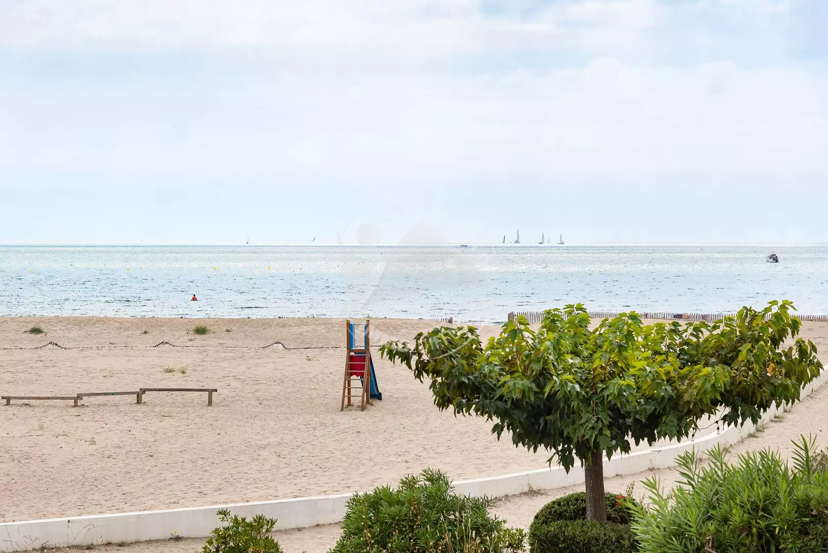 BOUCANET - Résidence de standing sécurisé et arboré directement sur la plage ,avec piscine ( ouverture mi- juin à mi- septembre)et terrain de pétanque. P2 de 39m² au 3ème étage avec une jolie vue sur la mer. Composé d'un salon avec convertible 2 places, TV et wifi. Une cuisine entièrement équipée ( micro-ondes, four, lave-vaisselle, frigo/congélateur), une chambre avec un lit double en 140 cm et un balcon de 3m² vue mer, une salle d'eau avec lave-linge, un WC séparé, une terrasse de 10m² avec vue mer exposée sud Ouest. Parking commun et sécurisé. A 1.5 km du Centre-Ville. Meublé et équipé pour 4 personnes.