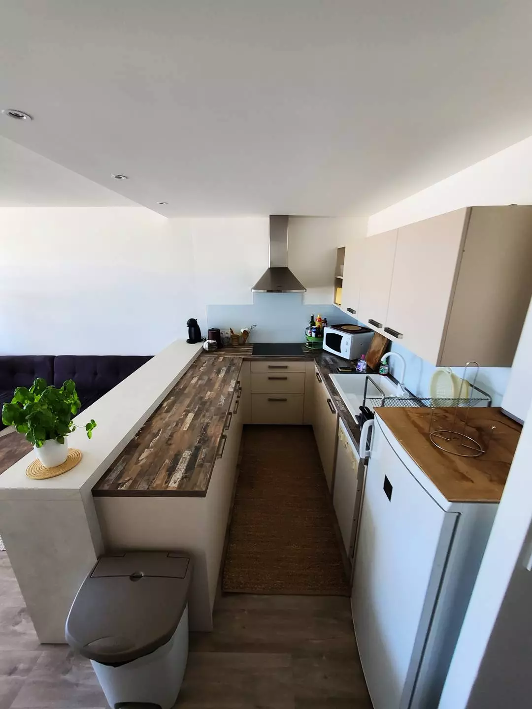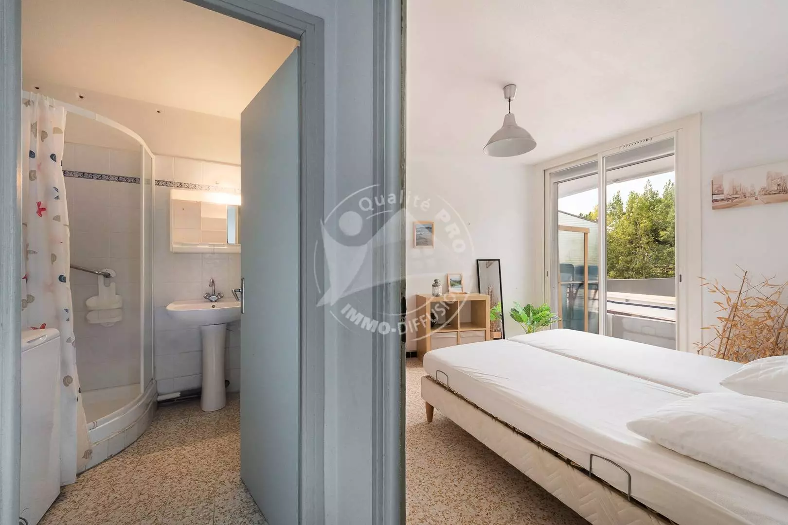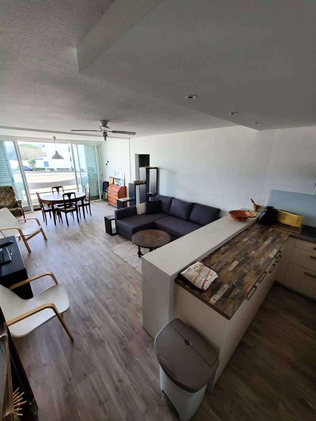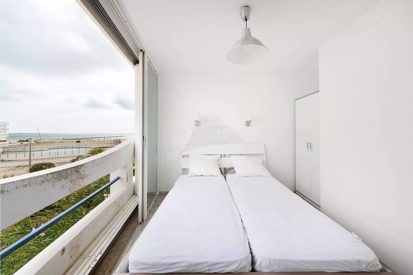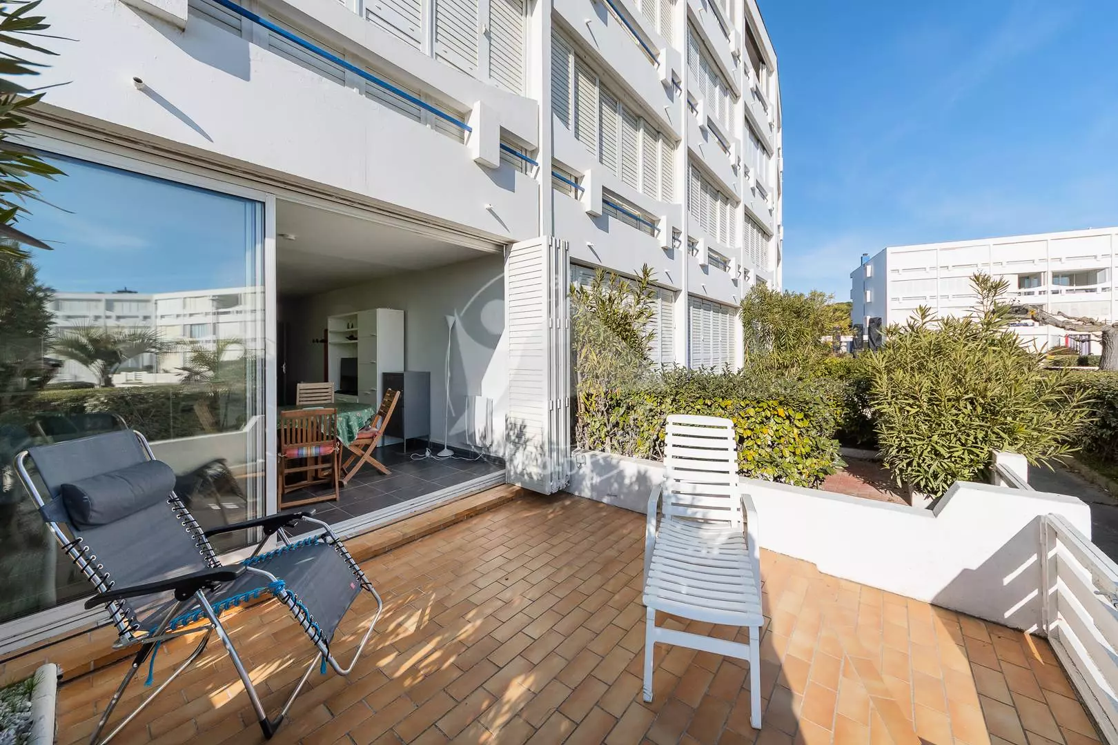 BOUCANET - Résidence de standing sécurisé et arboré directement sur la plage ,avec piscine ( ouverture mi- juin à mi- septembre)et terrain de pétanque. P2 de 39m² au 3ème étage avec une jolie vue sur la mer. Composé d'un salon avec convertible 2 places, TV et wifi. Une cuisine entièrement équipée ( micro-ondes, four, lave-vaisselle, frigo/congélateur), une chambre avec un lit double en 140 cm et un balcon de 3m² vue mer, une salle d'eau avec lave-linge, un WC séparé, une terrasse de 10m² avec vue mer exposée sud Ouest. Parking commun et sécurisé. A 1.5 km du Centre-Ville. Meublé et équipé pour 4 personnes.