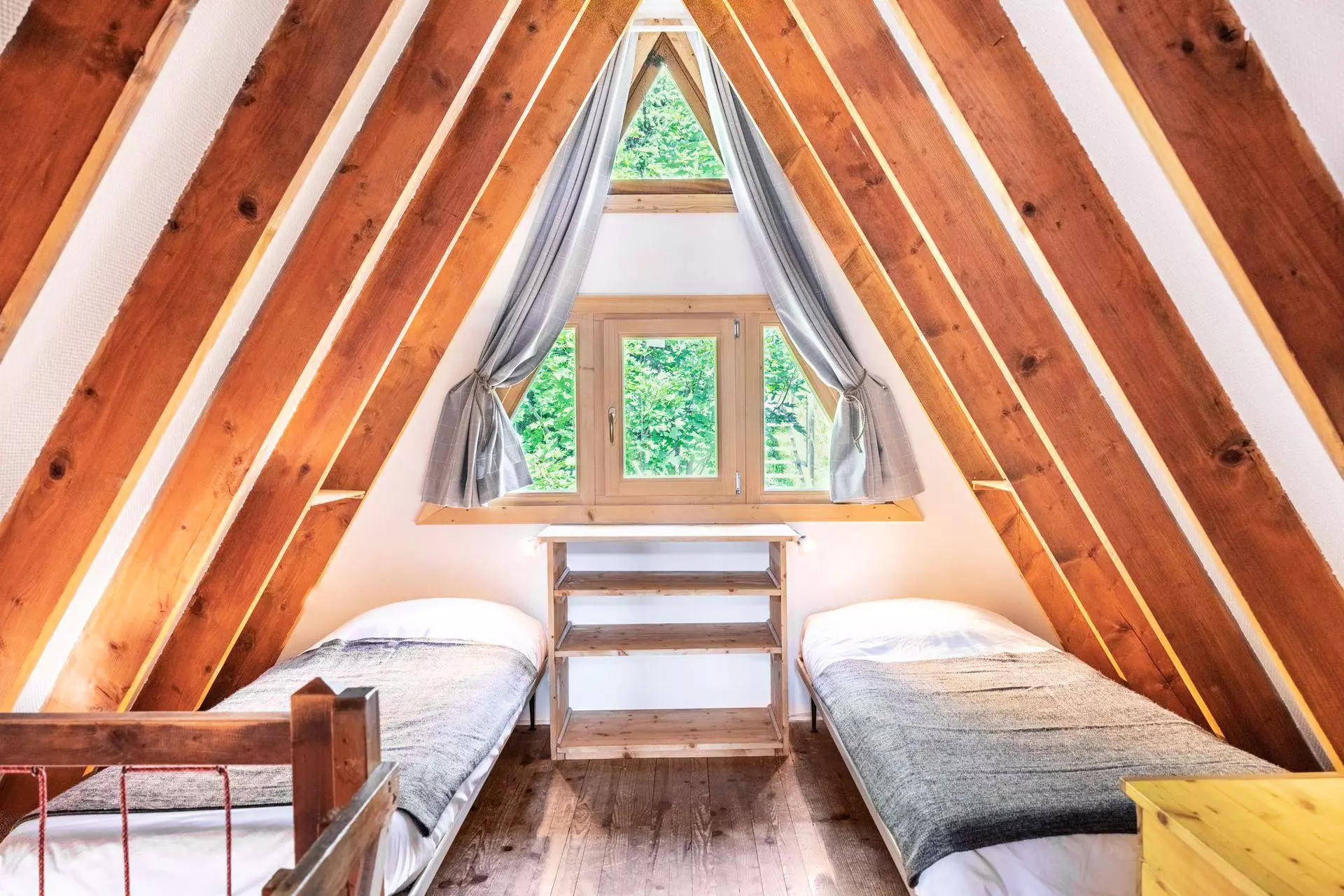 Les deux chambres du rez-de-chaussée peuvent accueillir 4 adultes, tandis que les deux chambres de l'étage donneront le sentiment d'être dans une cabane.