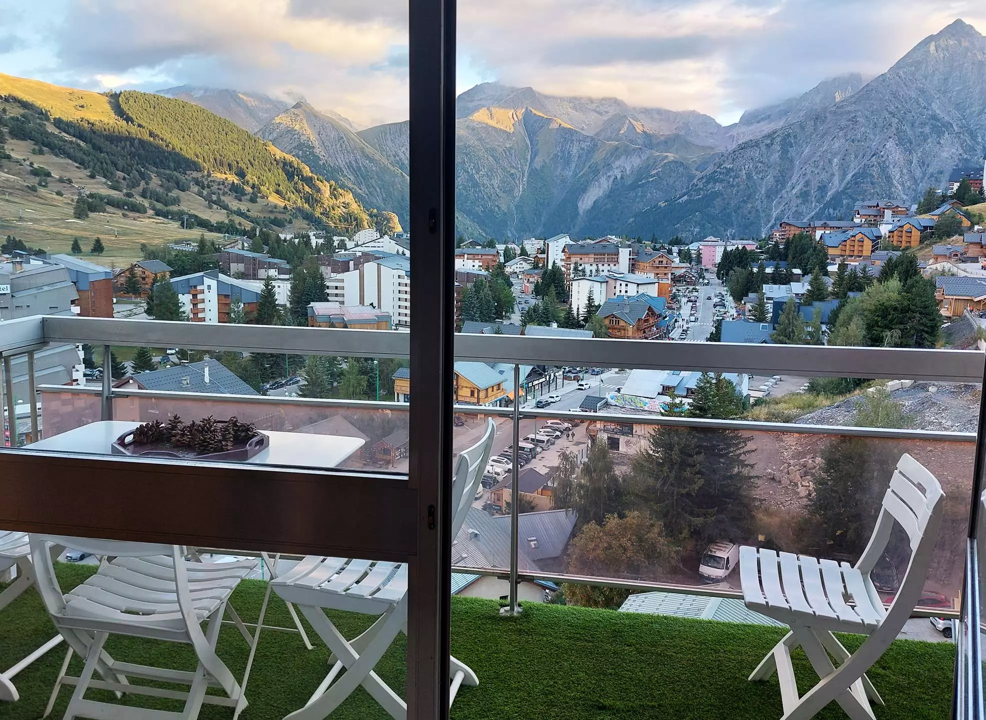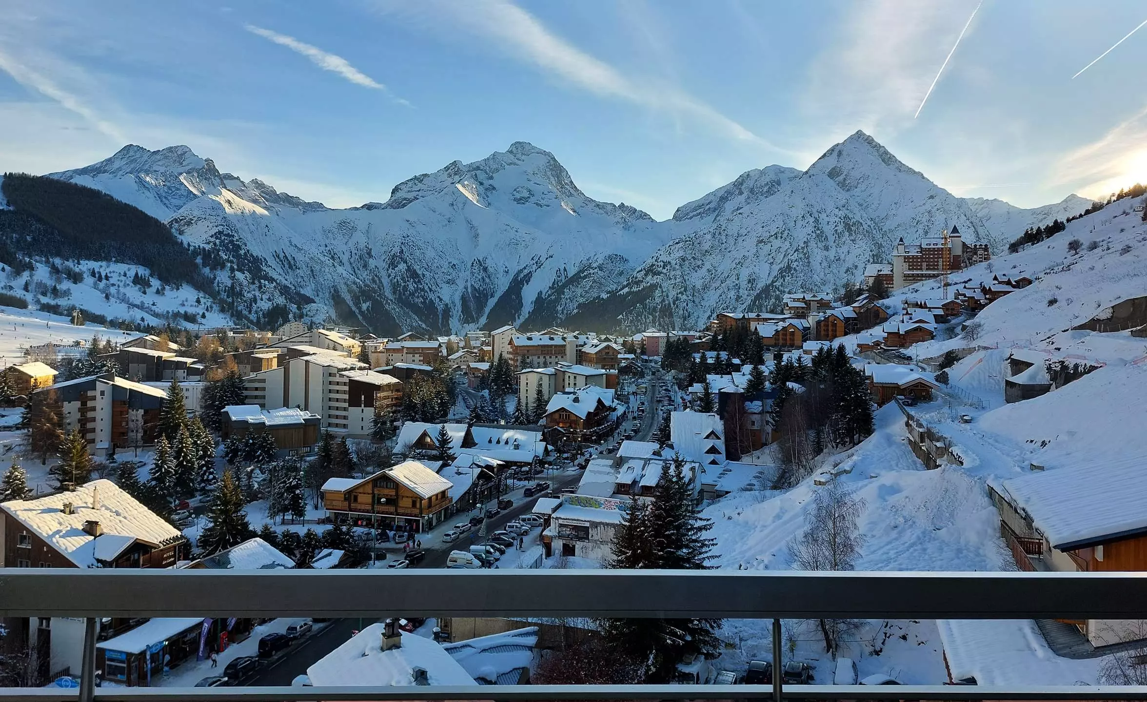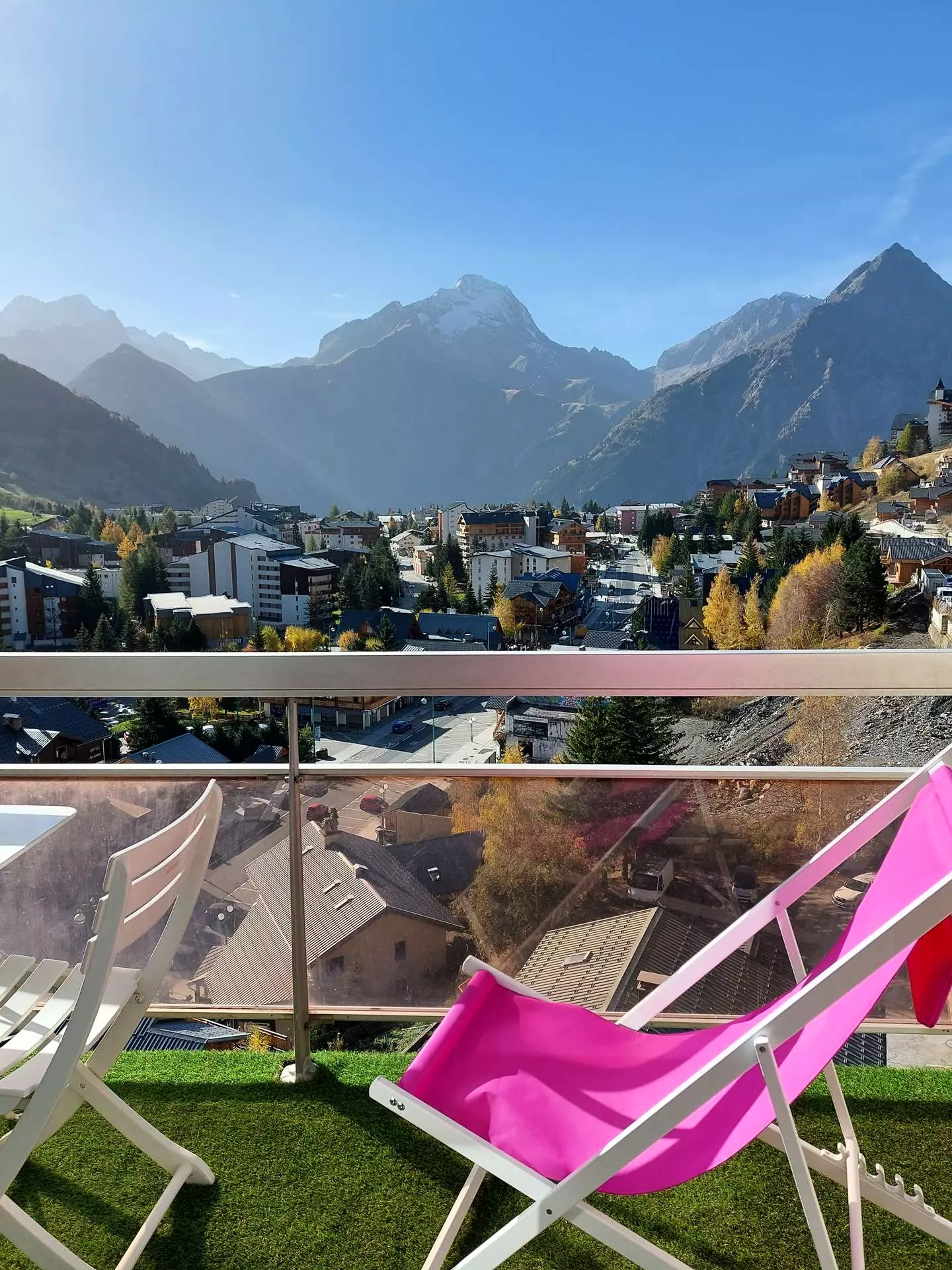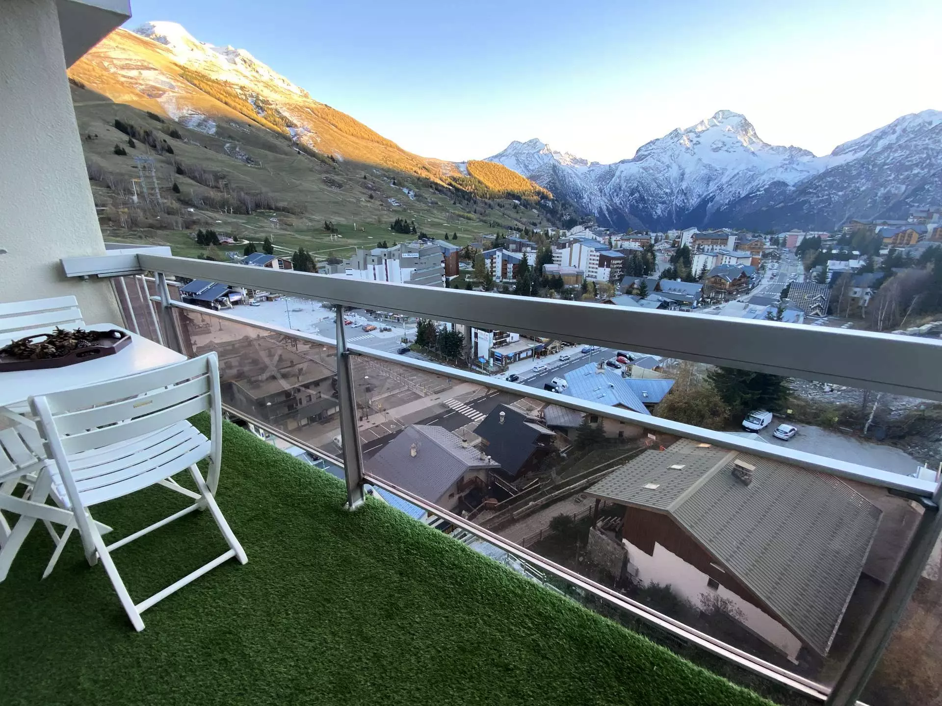 Un balcon avec une vue imprenable sur les montagnes et les animations de la station (descente aux flambeaux, feux d'artifice, etc.).