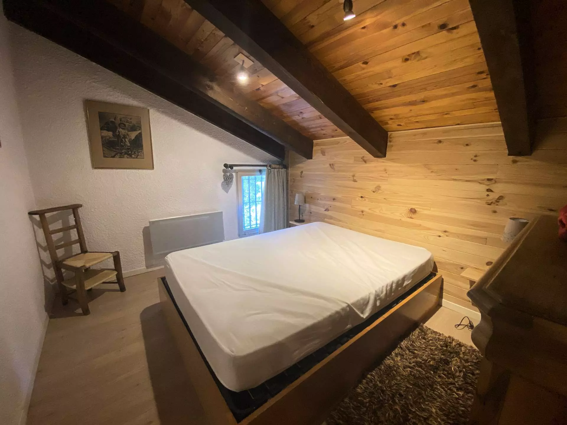 - Un vaste séjour chaleureux et harmonieux, à l'allure montagnarde, soignée et authentique par sa sous-pente descendante
