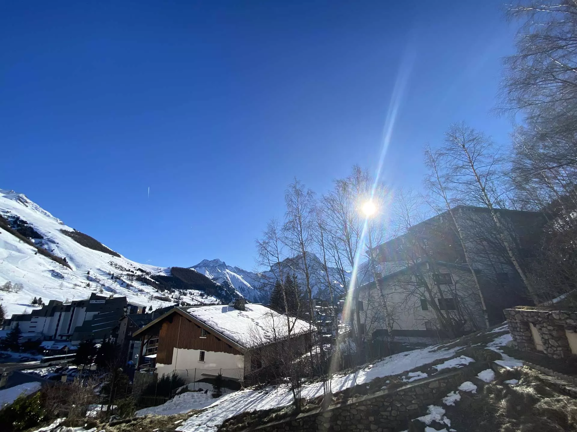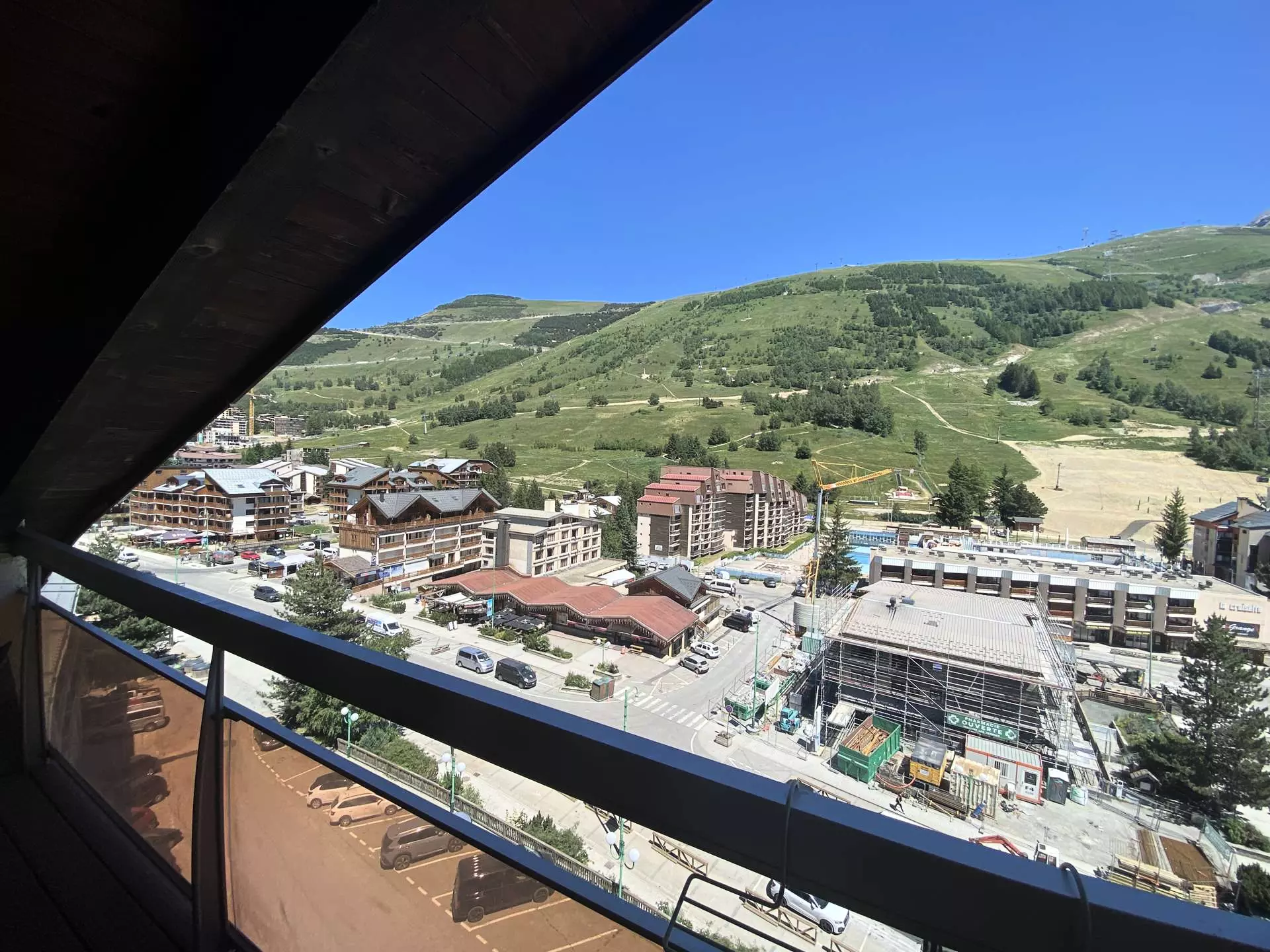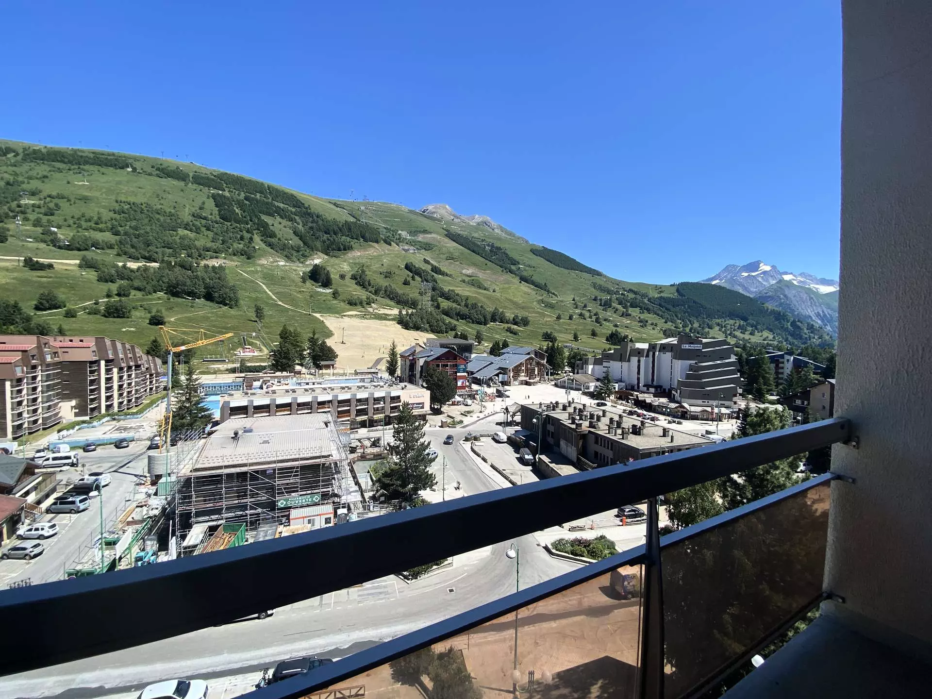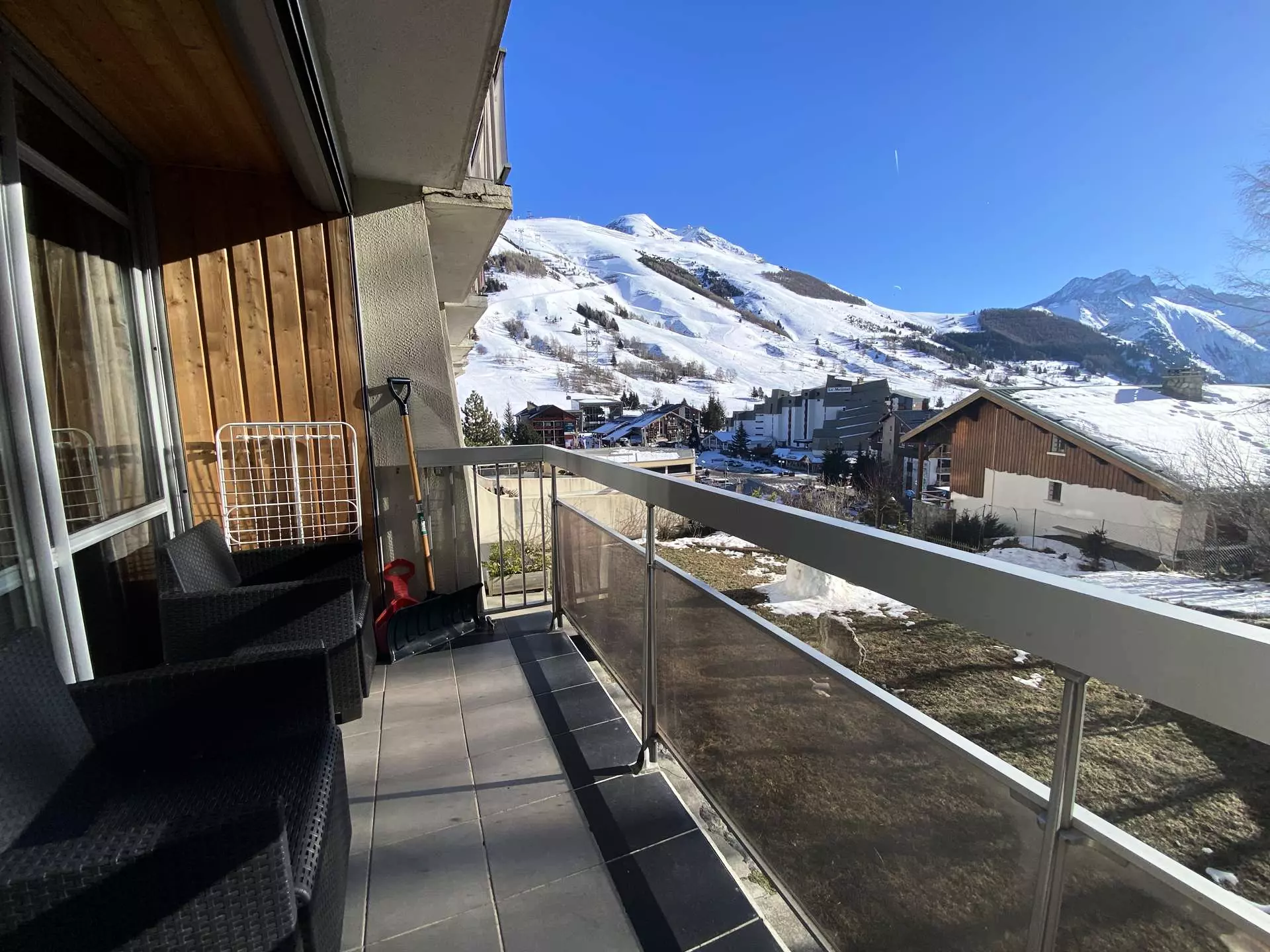 - Balcon d'environ 5m², exposé EST avec vue imprenable sur les pistes, et aux premières loges pour contempler toutes les animations de la station (descente aux flambeaux, feux d'artifice, etc.).