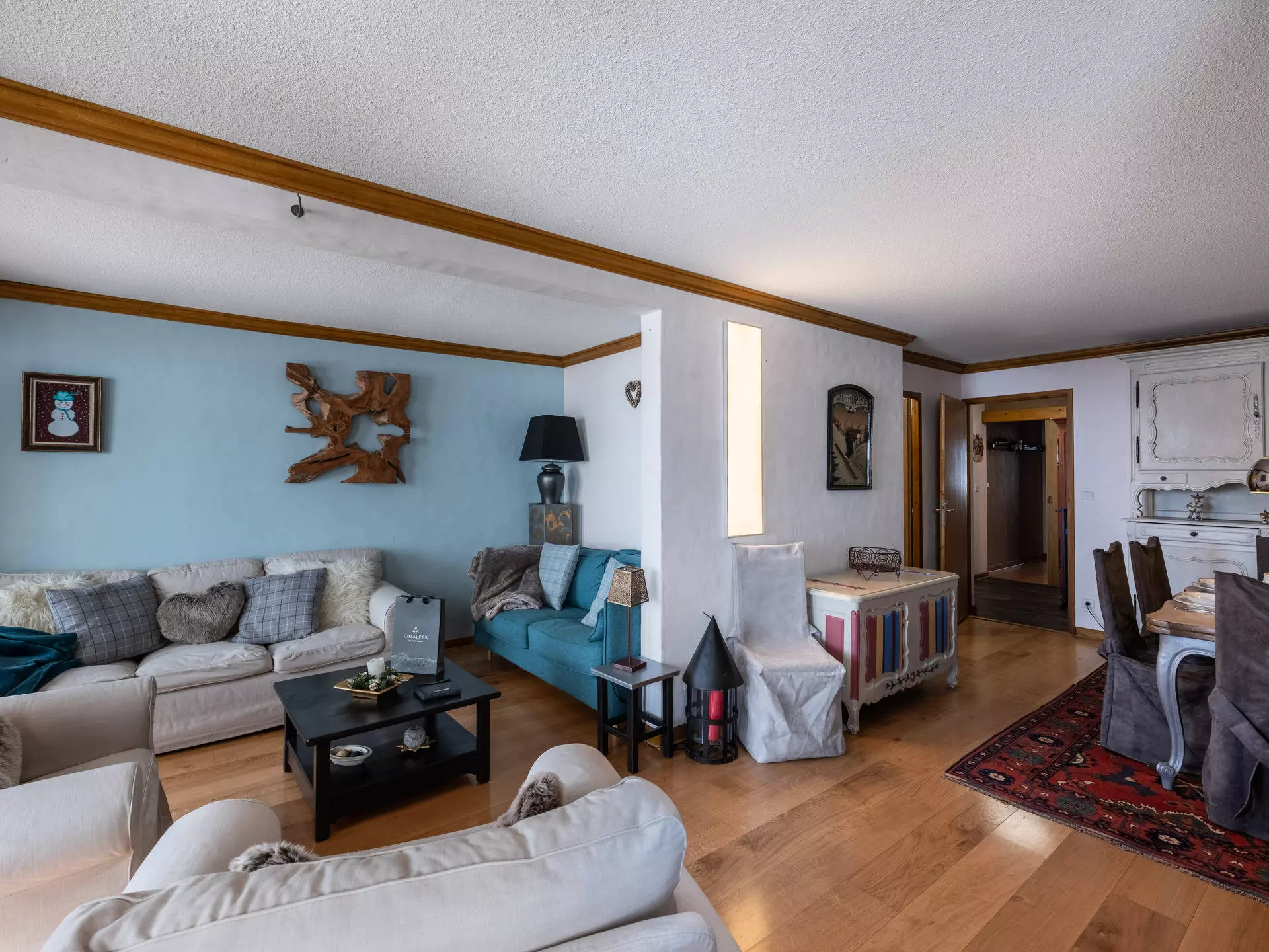 Profitez d'un grand séjour lumineux comprenant une salle à manger et un salon avec cheminée, offrant un espace idéal pour se détendre après une journée sur les pistes. La cuisine est entièrement équipée, vous permettant de préparer de délicieux repas à partager en famille ou entre amis. L'appartement dispose de trois chambres doubles, dont une en suite, ainsi que d'une autre salle de bain et même d'un sauna pour des moments après-ski relaxants. Avec son exposition ouest, le séjour bénéficie d'une luminosité naturelle et offre une vue imprenable sur les montagnes environnantes.