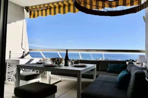 Ce studio classé 4 étoiles magnifique et confortable climatisé, entièrement refait se situe au 8eme étage avec ascenseur, il se compose à l'entrée sur votre gauche d'une cuisine tout équipée (four, frigo-congélateur, machine à lavé, lave-vaisselle, micro-onde) sur votre droite d'une charmante salle de douche avec toilette. Dans la pièce principale un lit en 160x200 cm up/down deux personnes, son coin repas, un canapé convertible en 140x200cm, une télévision et le Wifi donnant sur une terrasse t vue sur la mer avec son coin détente. Vous avez la possibilité d'un garage fermé en supplément. Le ménage de fin de séjour est inclus. Le linge de maison n'est pas fourni.