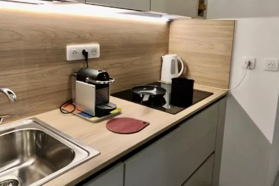 - Cuisine indépendante totalement rénovée et entièrement équipée : Lave-vaisselle, lave-linge, four, micro-ondes, cafetières (capsules, piston, moka), bouilloire, nombreux petits appareils d'électroménager... Tout le nécessaire pour des repas gourmands face à la mer.