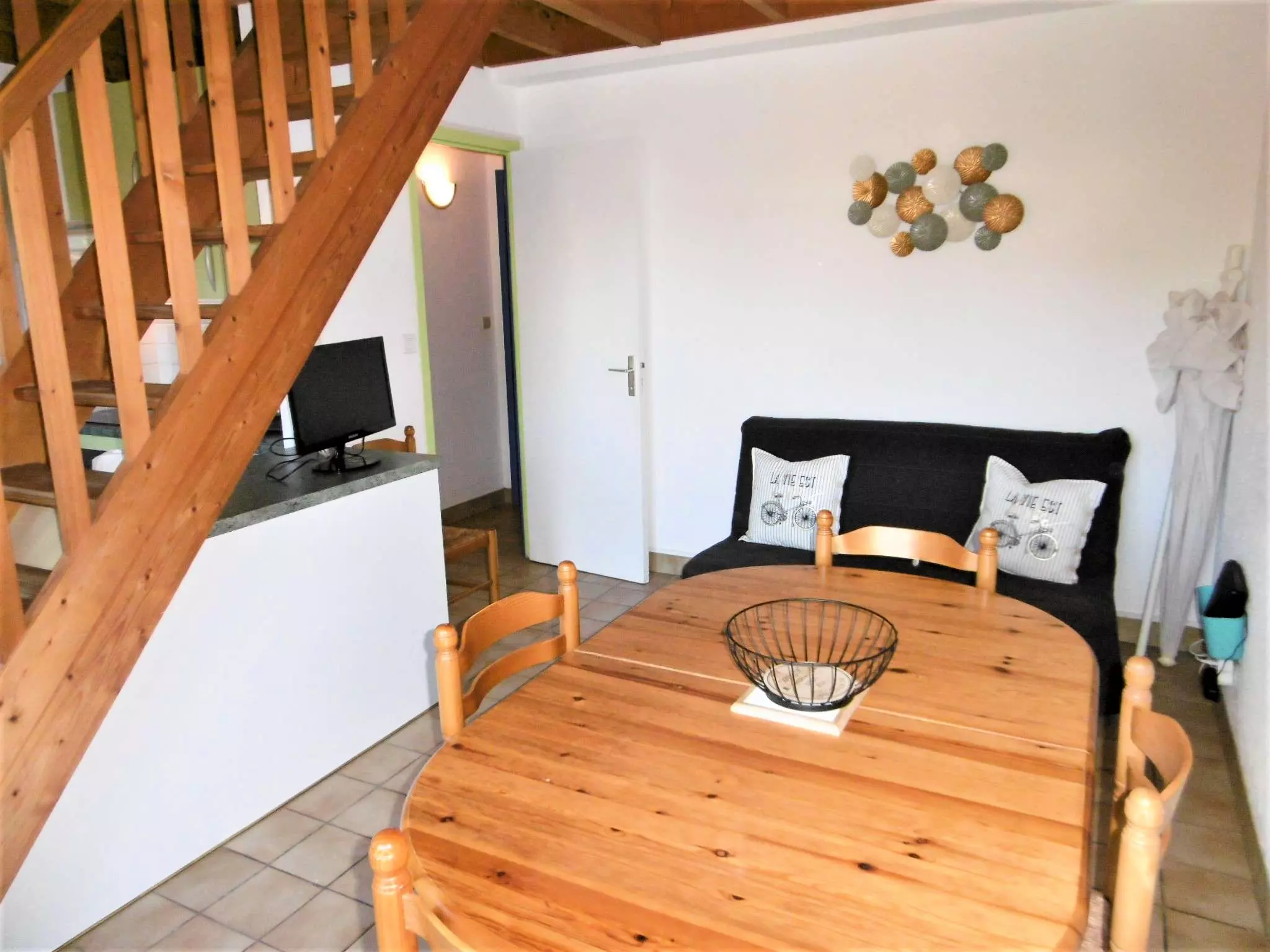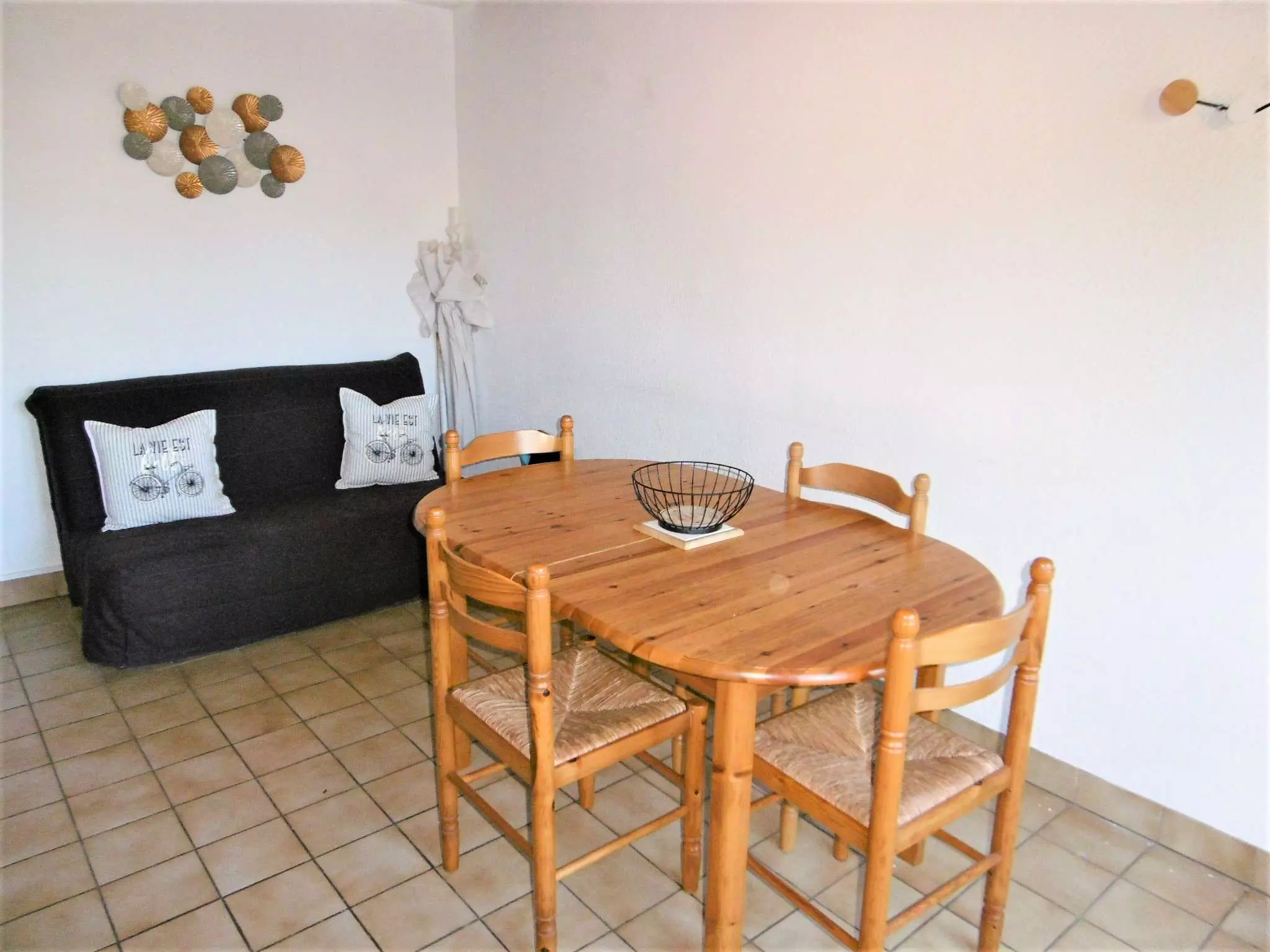 - Un séjour avec un canapé-lit type clic-clac 140 x 200