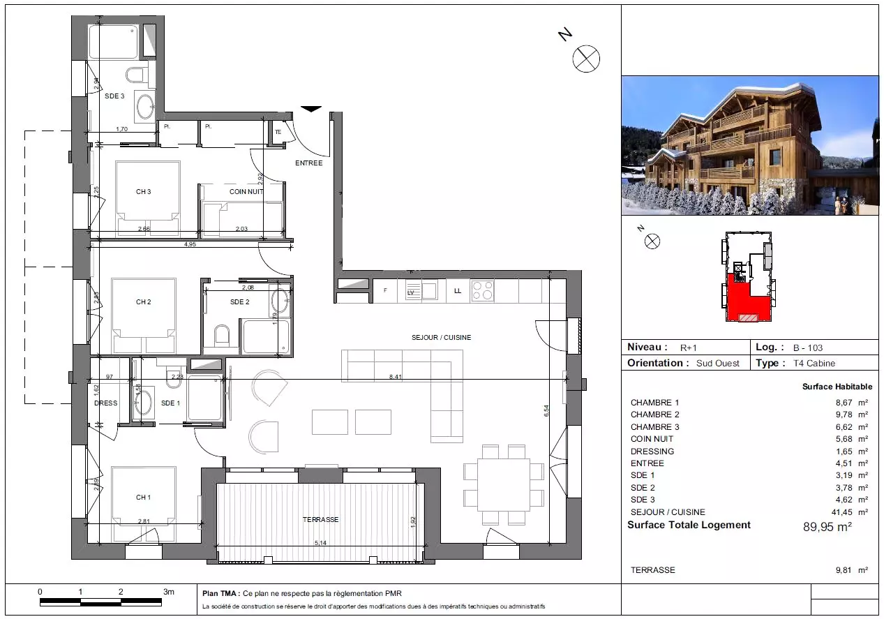 L'Echo du Pleney B103 est un appartement exceptionnel à l'emplacement idéal et prestations haut de gamme. A seulement 150 mètres de la télécabine de Super-Morzine. Au 1er étage d'une résidence neuve (avec ascenseur), il peut accueillir jusqu'à 8 personnes et fait 90m². Il comprend: